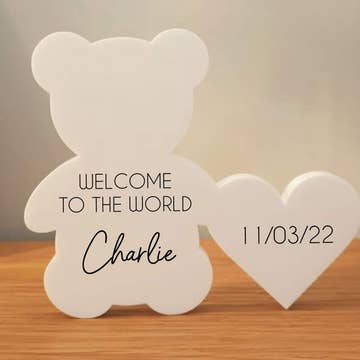 Freestanding Acrylic Teddy & Heart