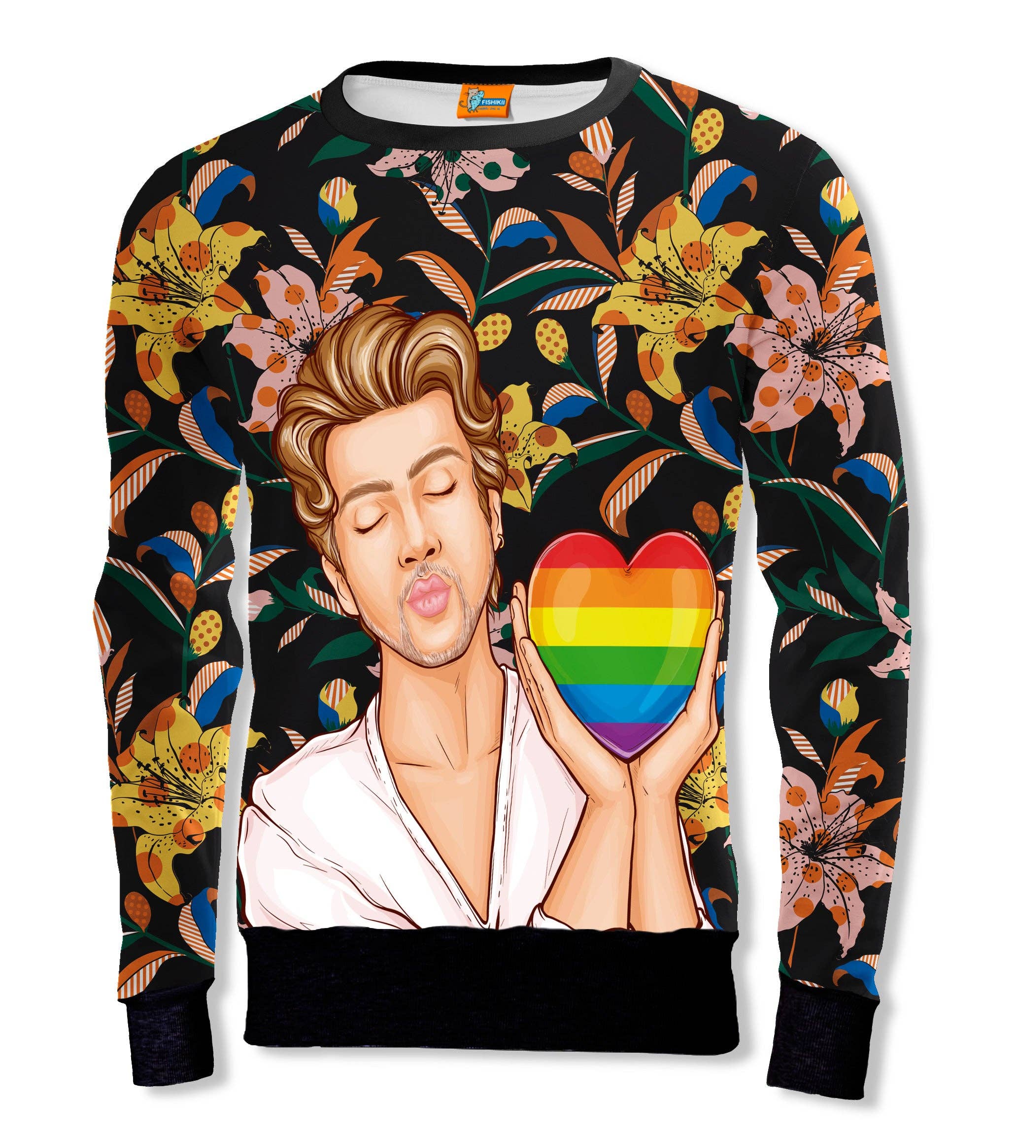 Fishikii Floral Skull Unisex Sweatshirt | SUD.356 Creatively designed sweatshirt, long sleeves, collar, cuffs and bottom in elastic jersey. COMPOSITION * Soft synthetic fiber fabric 100% polyester CARE INSTRUCTIONS * Machine washable at 40° Made to order. Manufactured and made in Barcelona, Spain.