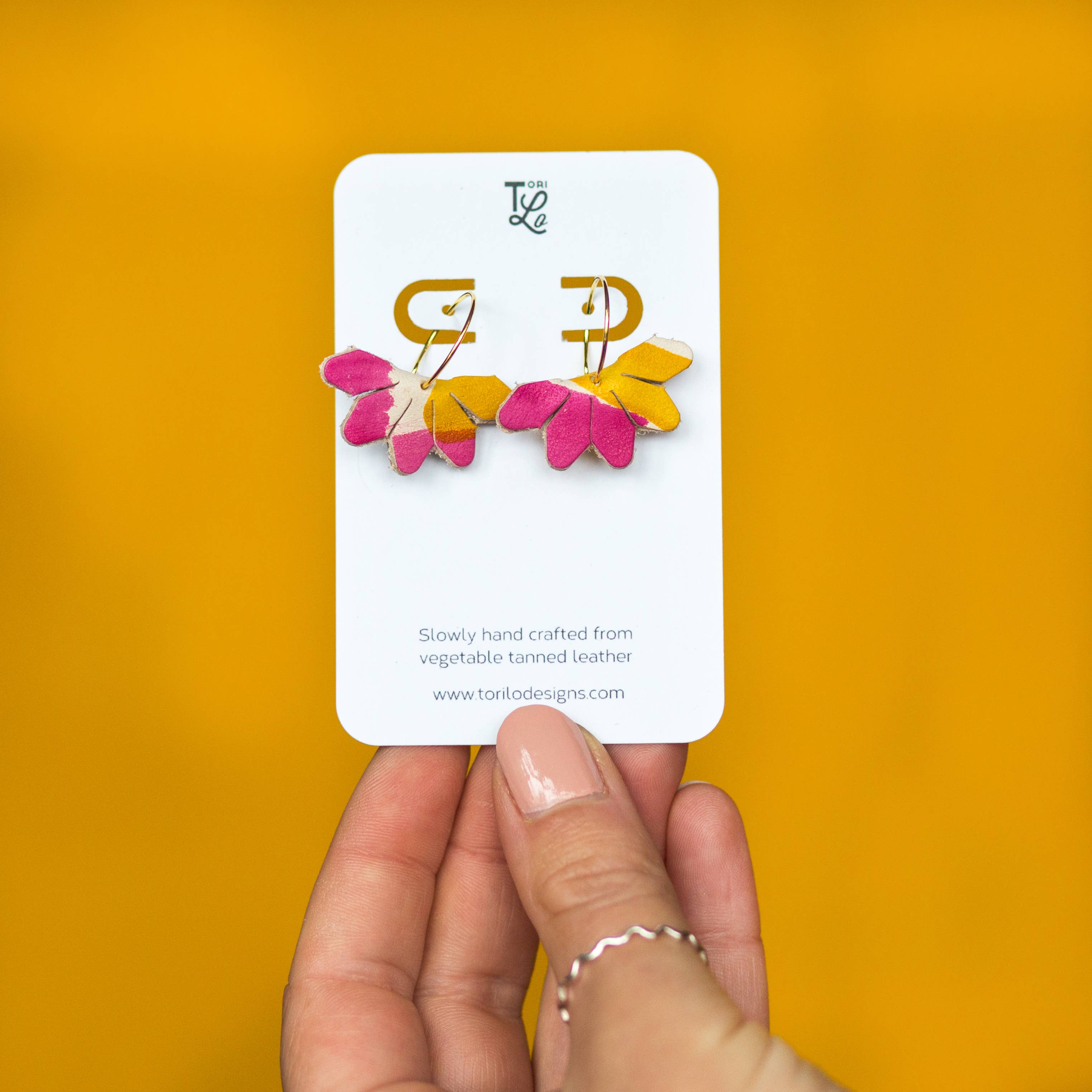 Leather flower keyring * Handmade flower keyring * Attach to keys or as a bag charm * Drop length 9cm * Handmade in High Quality Vegetable tanned leather * Layers of flower riveted together * Choice of 12 hand dyed leather colours * Handmade to order Make your keys stand out, or accessorise your bag with this flower key ring. Flower made from the highest quality veg tan leather, and hand dyed and cut, meaning each keyring is truly individual. Tori Lo Designs is fashion accessories brand designed and manufactured by myself, the owner, Vicky Wade. In creating Tori Lo Designs I strive to create a high end, hand crafted, hard wearing and personable product, care taken in each and every detail to create an item that is desirable and unique. I take pride in the fact that each and every detail is hand crafted from cutting to dying to sewing.