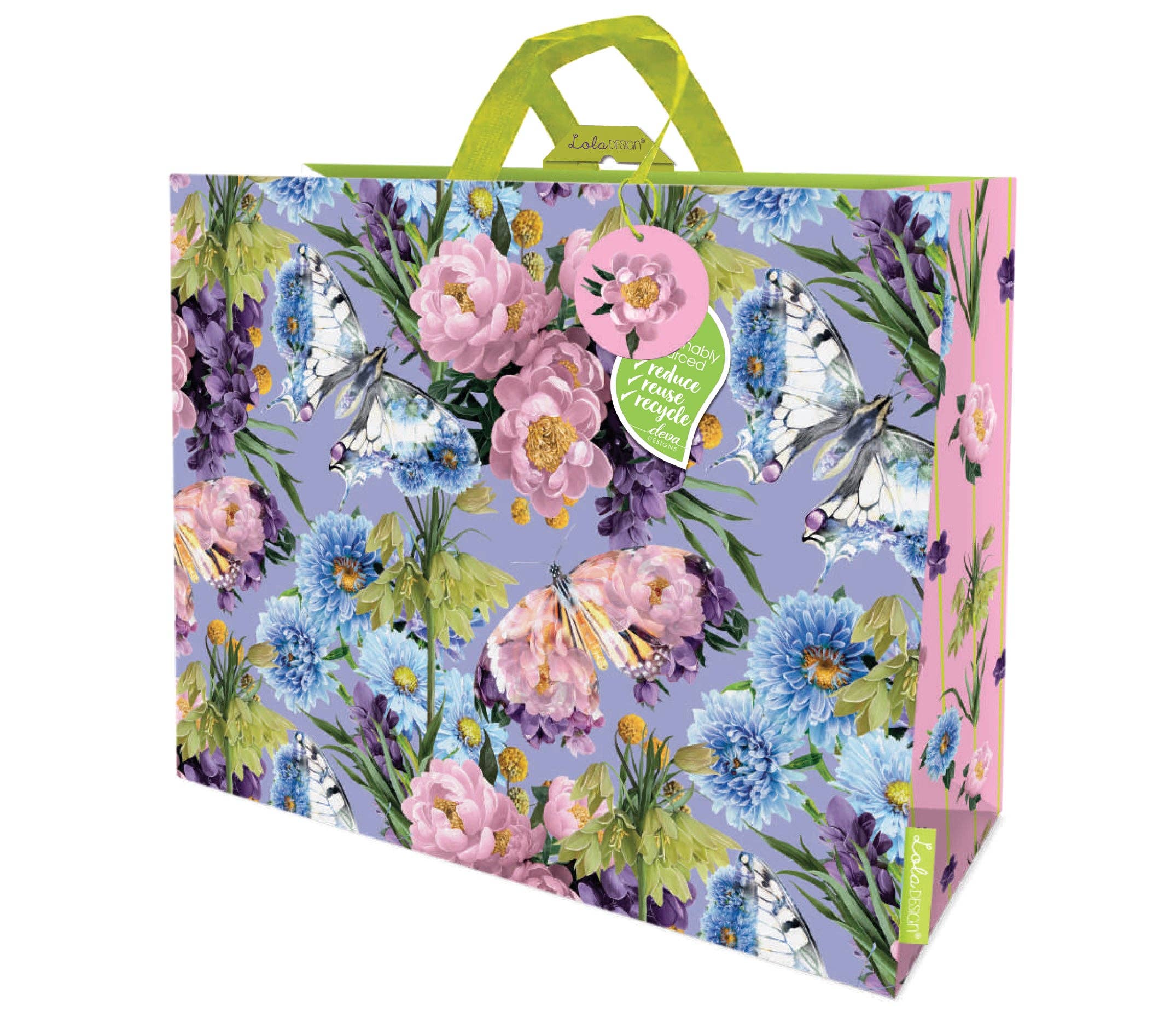 Retro Inspired Gift Bag Size: 13.5in x 9.6in x 4.5in **PLEASE NOTE - bag does not come with tissue paper** 1970's inspired pattern with classic colors of the decade. Durable, corded handles Made with high grade laminated paper Resists scuffing, scratching and fingerprints