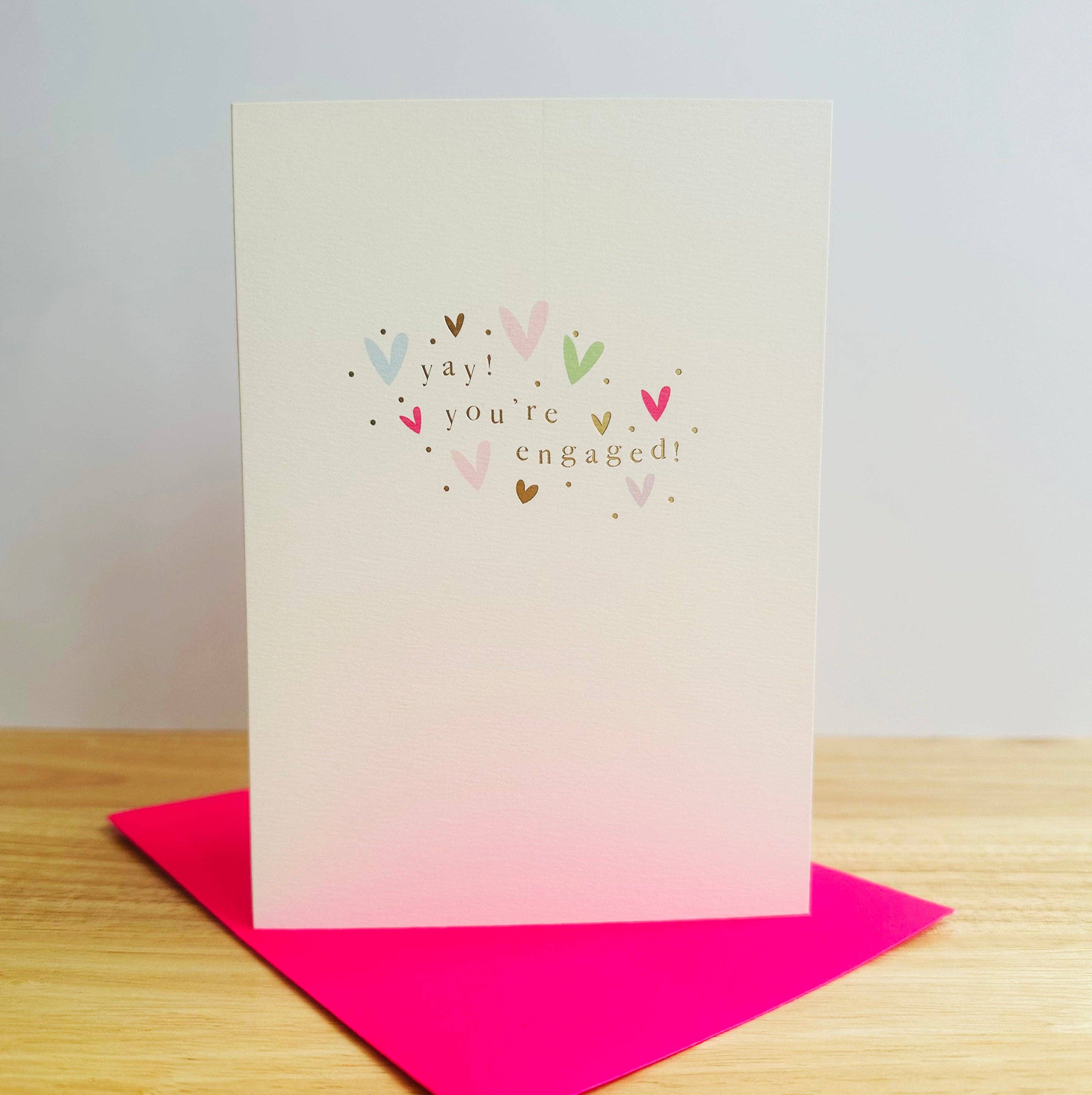 Send a message of love and congratulations to the newest engaged couple in your life! LISTING IS FOR: And Then They Were Engaged Card Card Size: A6 or 6.5x4.25 inches when folded Printed ready to use Great treasured keepsake gift Comes with high quality matching envelope Beautiful lux card stock Unique font Hand drawn heart motif Card is blank inside, leaving lots of space for your personal heartfelt message Flat printed with professional quality ink Each card is packaged in a cello bag for protection