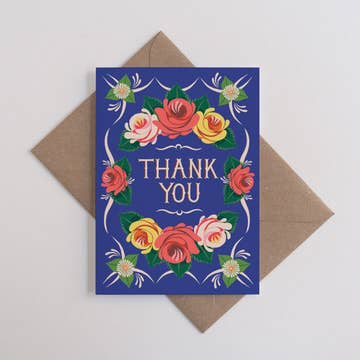 "Muchas Garcias." 4-bar folded card printed on recycled paper. Blank inside. Sold as singles or in boxes of 6.