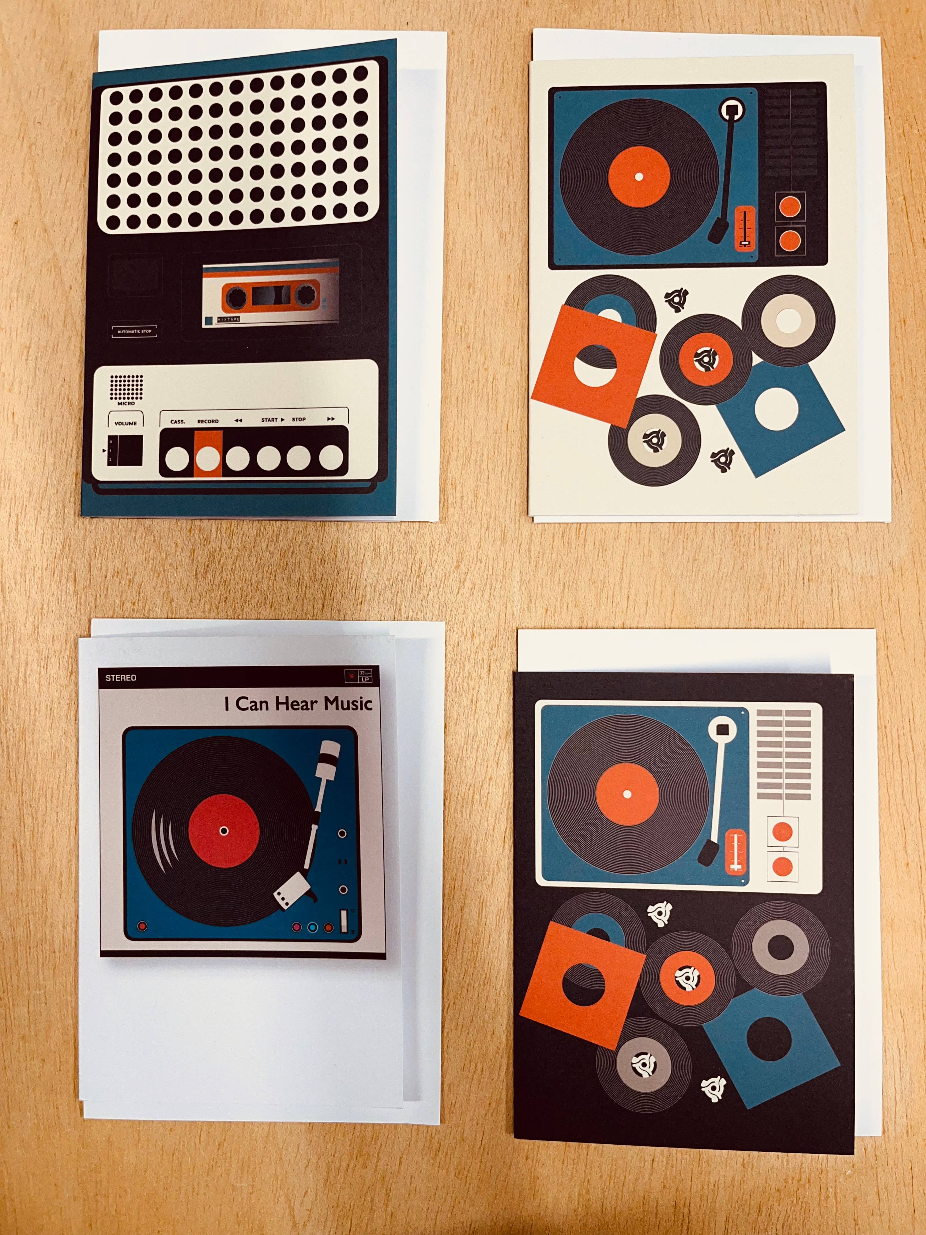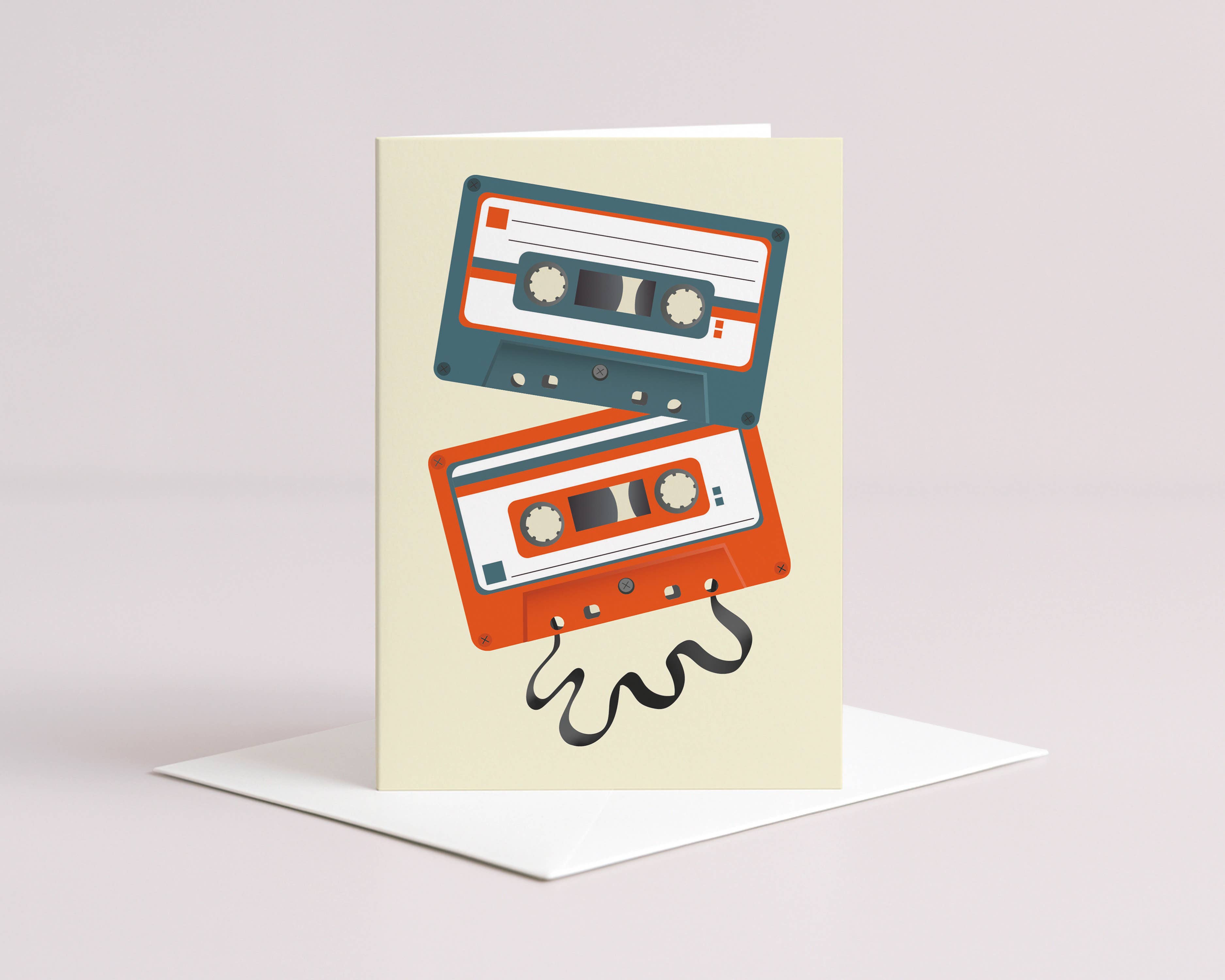 Cassette Recorder card - Blank inside for your own message - Printed on matte card to give a vintage feel - Size A6 - 148 x 105mm - Printed in the UK on 350gsm card - In order to be as eco-friendly as possible, my cards are supplied with a premium white envelope but without cellophane wrappers or card catch stickers.