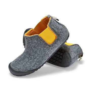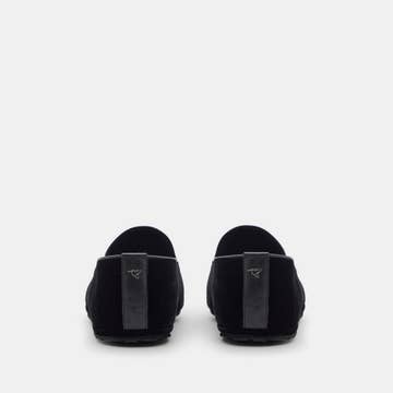 Slipper made in France Rubber outsole Moka velvet top (called “rod”) Black velvet inner lining Insole (called “first”) printed cotton on foam