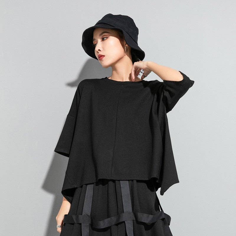 Material:Cotton,Chinlon Style:Loose,Cute,Intellectual,All-match Feature:Asymmetric Neckline:Round-neck Occasion:Going out,Casual,Artistic Retro,Light Maturity,Stylish Selection,Leisure Fashion Seasons:Spring,Autumn Type:T-Shirts Tops Sleeve Length:Long Sleeve Sleeve Style:Raglan Sleeve Size M (inch) : Bust= 40.56 ; Shoulder= 16.38 ; Sleeve= 20.67 ; Length= 23.79 ; Size L (inch) : Bust= 41.34 ; Shoulder= 16.77 ; Sleeve= 21.06 ; Length= 24.18 ; Stay effortlessly cool and stylish in this Solid Color Irregular Long Sleeve T-Shirt. With a unique and edgy design, this shirt is the perfect addition to your casual wardrobe. Made from high-quality material, it offers both comfort and durability. Perfect for any occasion, this t-shirt is a must-have