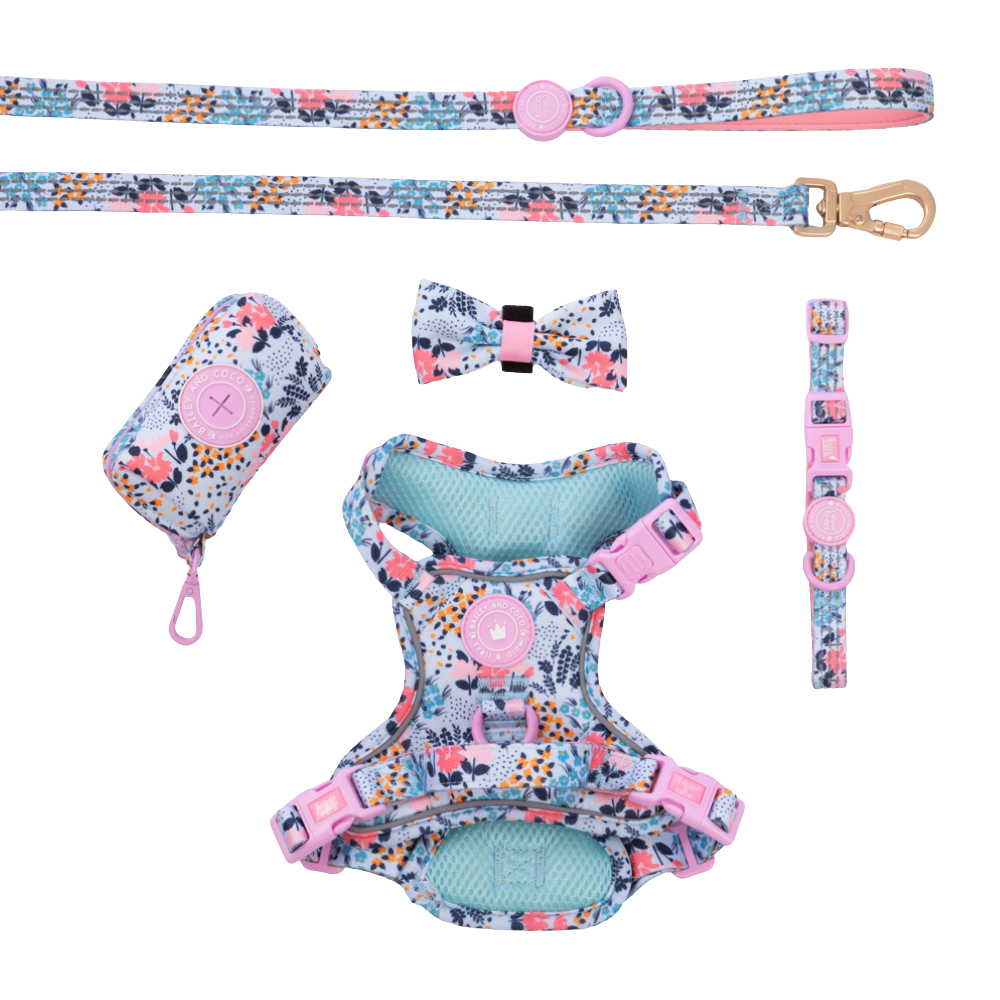 The harnesses, collars and leashes all look just as they do in the photos. Vivid colors, the fabric feels very comfortable for dogs to run and be active. I was very pleased with Django and I plan to order more products in the future.