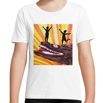 Printed on rabbit skins sizes 6month -5/6t and gildan on sizes yxs-yl