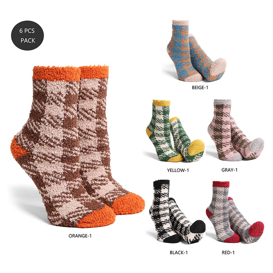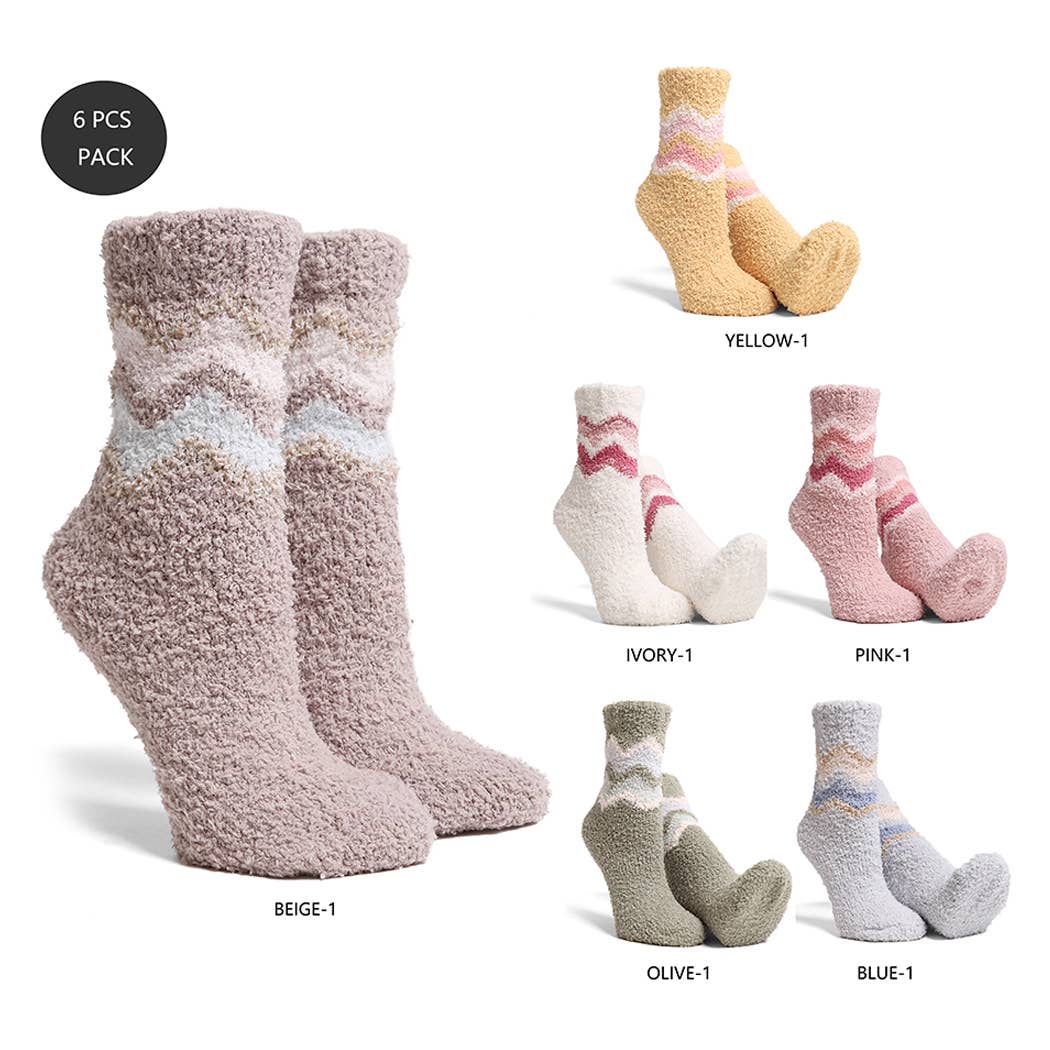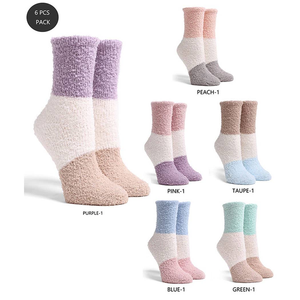 Luxury Soft Color Blocked Mini Crew Winter Socks - 6 Assorted Pairs in a Pack - 100% Polyester Microfiber - 1 Pack (6 Assorted Colors) (BLUE, GREEN, PEACH, PINK, PURPLE, TAUPE) - Unit Price: $1.95 - Pre-Pack Price: $11.70 **Size-One Size Fits Most (Women's Socks Size 6-11)**
