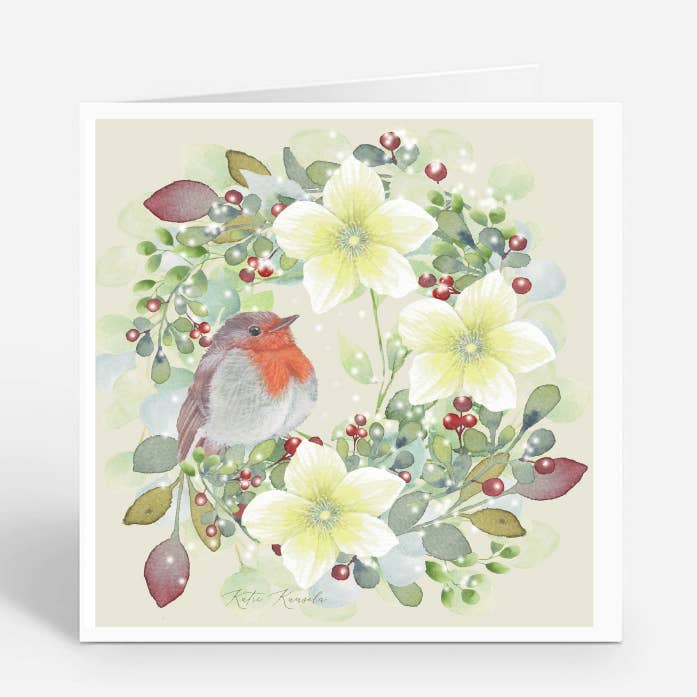 Unique GiclƩe art print Easter Card illustrated by Katri Kuusela. This hand painted big scalloped edges die-cut folded Easter Card is blank inside, offers space for your own message. The card is printed in Finland on luxurious thick FSC-certified matte art paper similar to heavy watercolor paper with a beautiful subtle texture, packed with a white envelope.