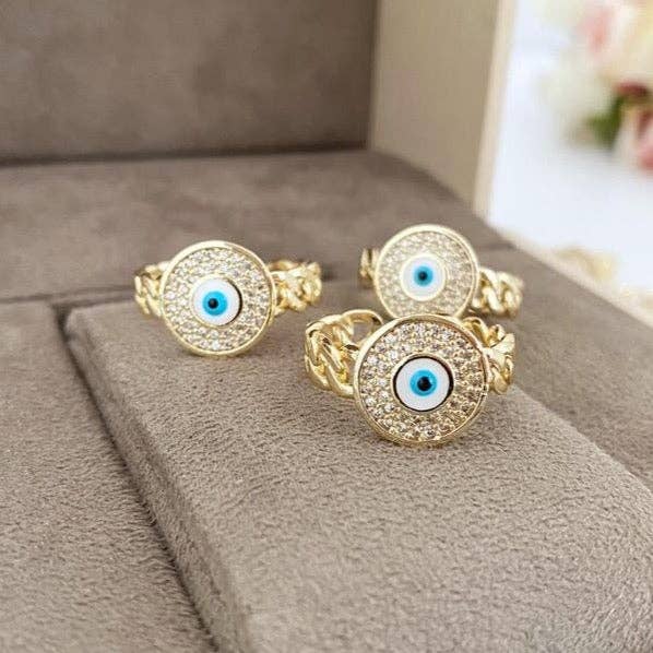 Wholesale Hamsa Hand Ring, Evil Eye Ring, Adjustable Ring, Gold Ring, Lucky Evil Eye Ring
