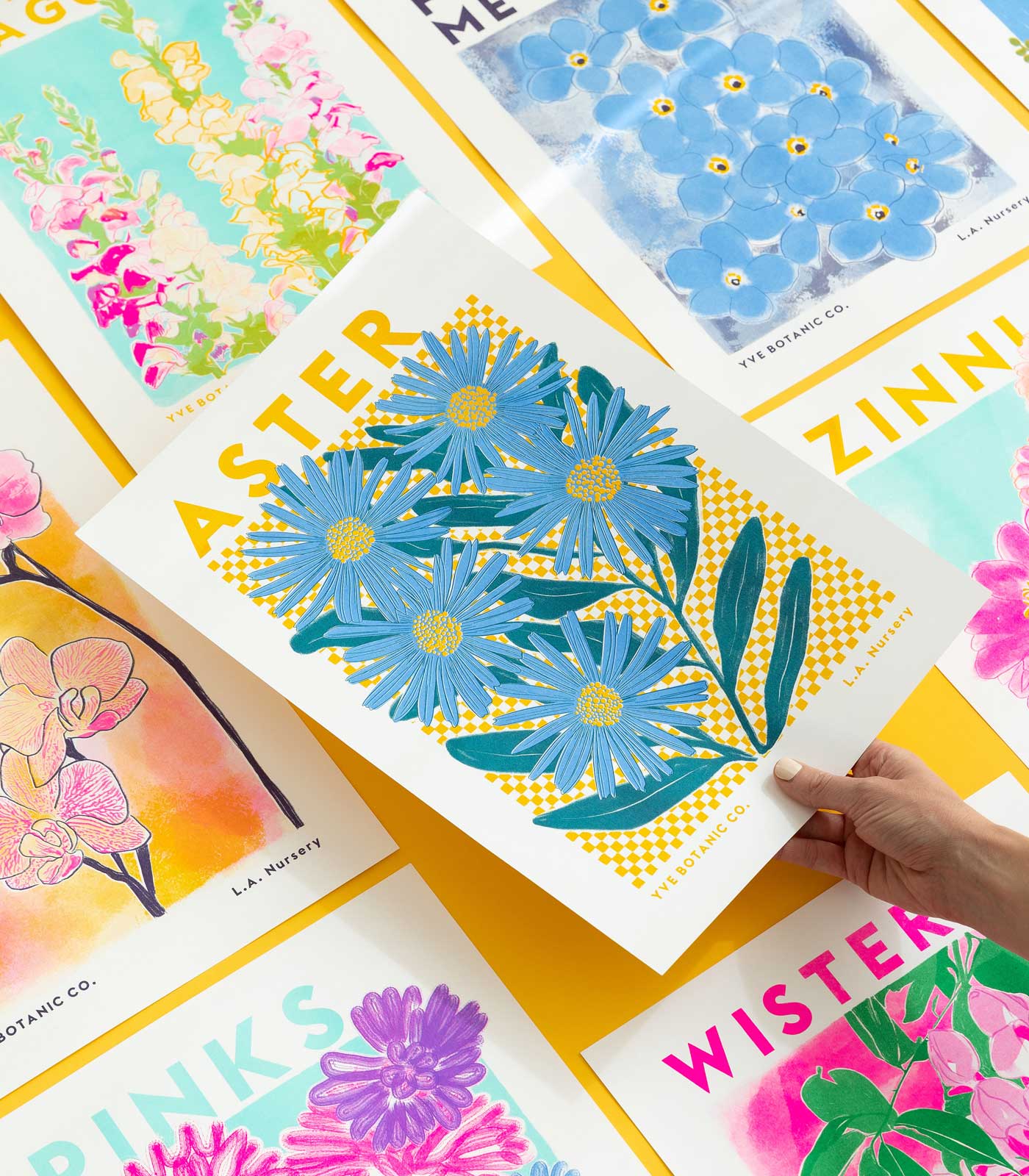 Our Forget Me Not Flower Riso print in cornflower blue, sunflower yellow, and deep purple. This riso print is part of our L.A. Nursery collection, which sells very well in multiples. Paper stock: Accent Recycled 250 gsm Sizes: A4: 21 x 29.7 cm A3: 29.7 x 42 cm This riso print is available unframed.