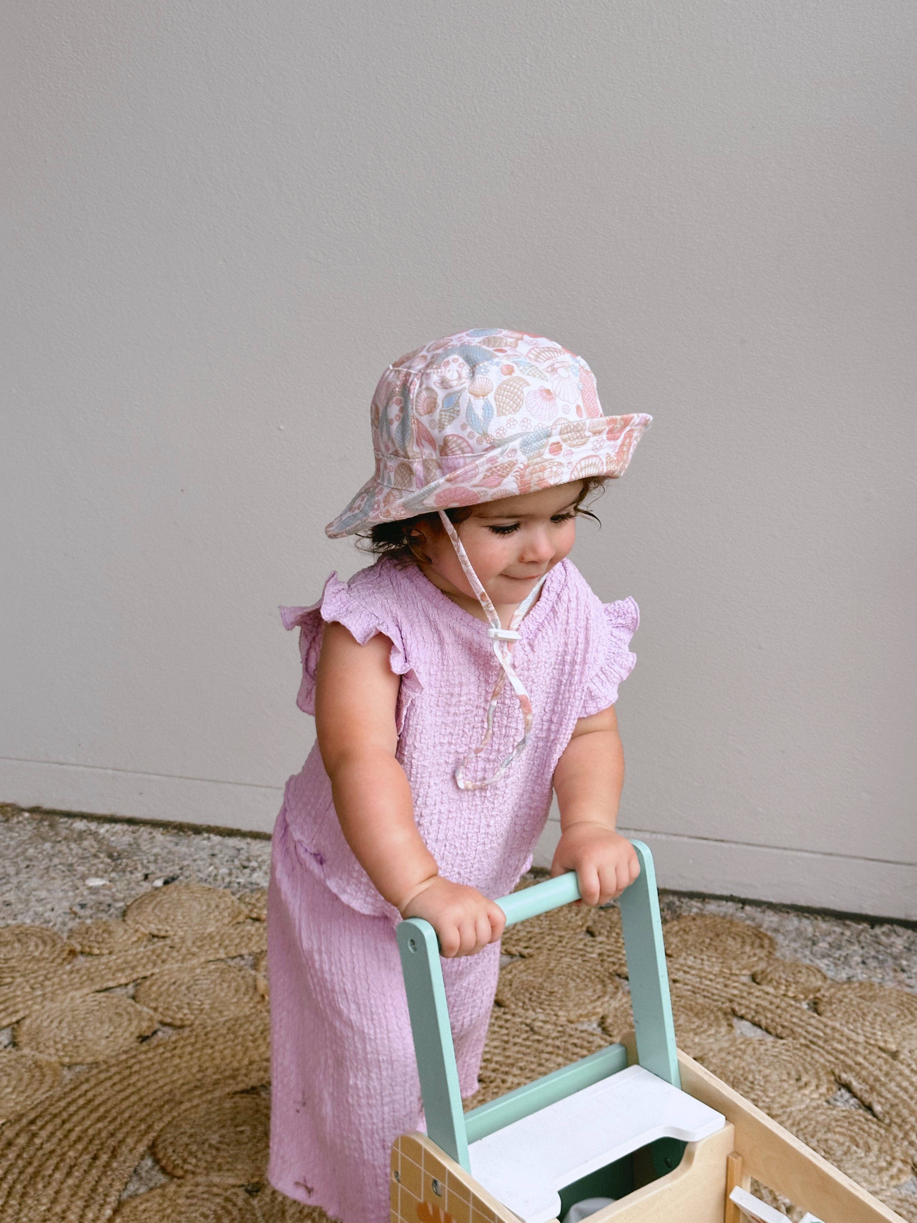 Keep little ones protected and cute with our NEW Kids Cotton Bucket Hat. Made from 100% breathable cotton, this hat is designed for comfort and durability, making it perfect for all-day wear. The wide brim provides excellent sun protection. Featuring a soft, adjustable chin strap, our hat ensures a secure fit, even on windy days. Available in a variety of fun and vibrant colours that Kinnder is known for, it pairs perfectly with our backpacks and accessories to not only create the cutest outfits but to also makes matching your little ones belongings at daycare an easy task to avoid confusion! Available in 3 sizes. Please note that different materials can produce slight colour variations between products.
