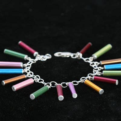 Molds made from real coffee beans are used to cast these solid recycled sterling silver beans. Ten link together into an adjustable 7"-8" bracelet.