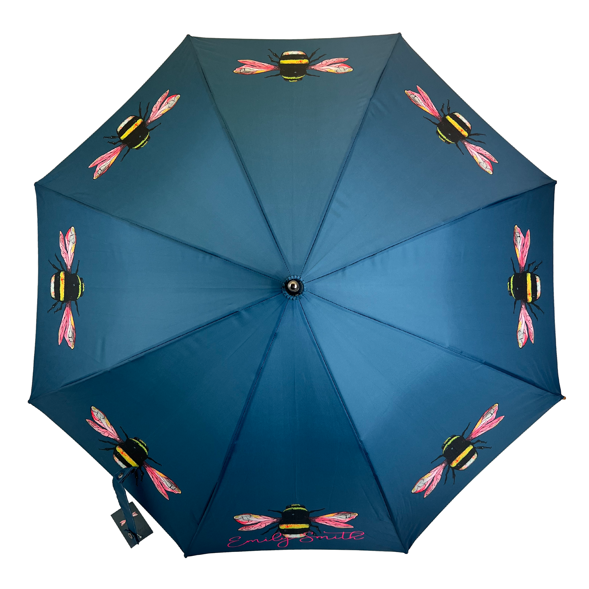 Beautiful designs by Emily Smith on Umbrellas produced by Soake. A match made in heaven. Classic Stick umbrellas with wooden shaft and handle and fibreglass ribs.