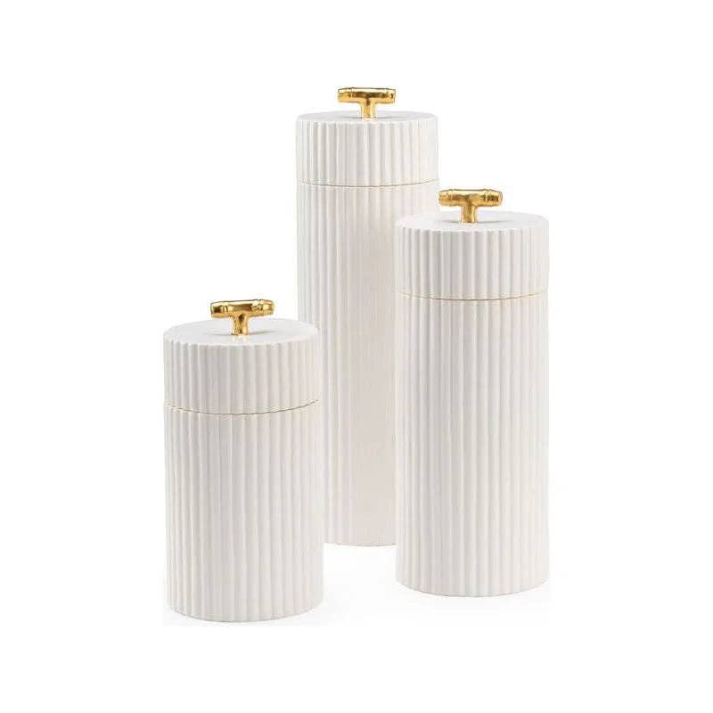 Elevate your coastal-inspired kitchen with this set of two ceramic oran canisters. Featuring a sleek column shape and a stunning Arabic indigo pattern on a bone white porcelain background, these canisters provide both style and functionality. Keep your kitchen organized and add a touch of sophistication to your home decor. The sophisticated Arabic indigo pattern is repeated over a bone white porcelain background, making it a perfect addition to any kitchen. These canisters not only enhance your home's aesthetic, but also offer ample storage space. With these Coastal Style Blue Ceramic Oran Canisters, you don't have to choose between style and practicality. Coastal Style Blue Ceramic Oran Canisters (Set of 2) Features: * Dimensions (inches): 9H x 8W x 8D * Main Color or Finish: Blue * Materials: Ceramic * Interior Style: Coastal * Superior Long Lasting Quality * We do not recommend using harsh or abrasive cleaners at any time as they can damage product * Wipe surfaces gently with soft, dry cloth * If needed, you may use a lightly damp cloth with water only on base * No Assembly Required * Description Oran Canisters (Set of 2) -D. * Color Blue * Finish Blue White Ceramic * Product Notes Pattern and finish may vary. Outdoor safe in covered areas for mild weather only. Bring indoors in extreme heat or cold. * Dimensions As Shown Large: 9"h x 8"dia.; Small: 6"h x 8"dia. * Interior Dims 3"dia. vase opening * Style Coastal Proposition 65 WARNING: This product may contain chemicals known to the state of California to cause cancer, birth defects or other reproductive harm. Due to various screen settings, the color of the item may look slightly different in person from what you see on your screen. We try to make sure that the image you see is as accurate as possible.