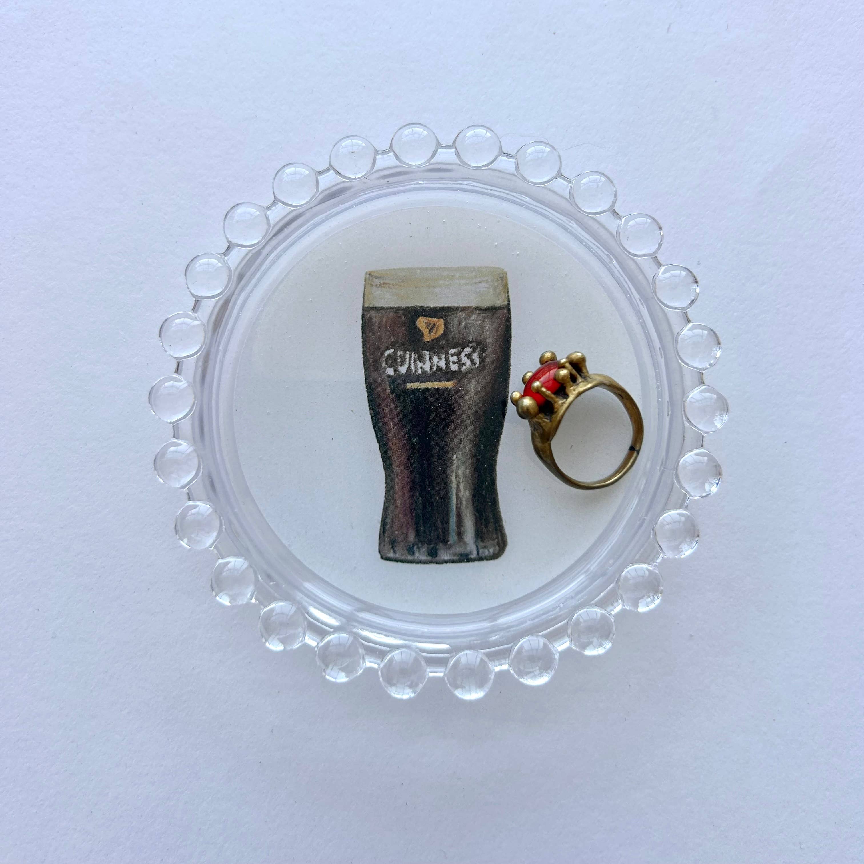 These little dishes make perfect housewarming & host gifts, Christmas presents & stocking stuffers. Use them to hold jewelry, keys, snacks, vitamins— you name it! They even make great drink coasters. Original illustrations hand-set into 4" glass dishes with food-safe epoxy resin. Made in Brooklyn, NY.