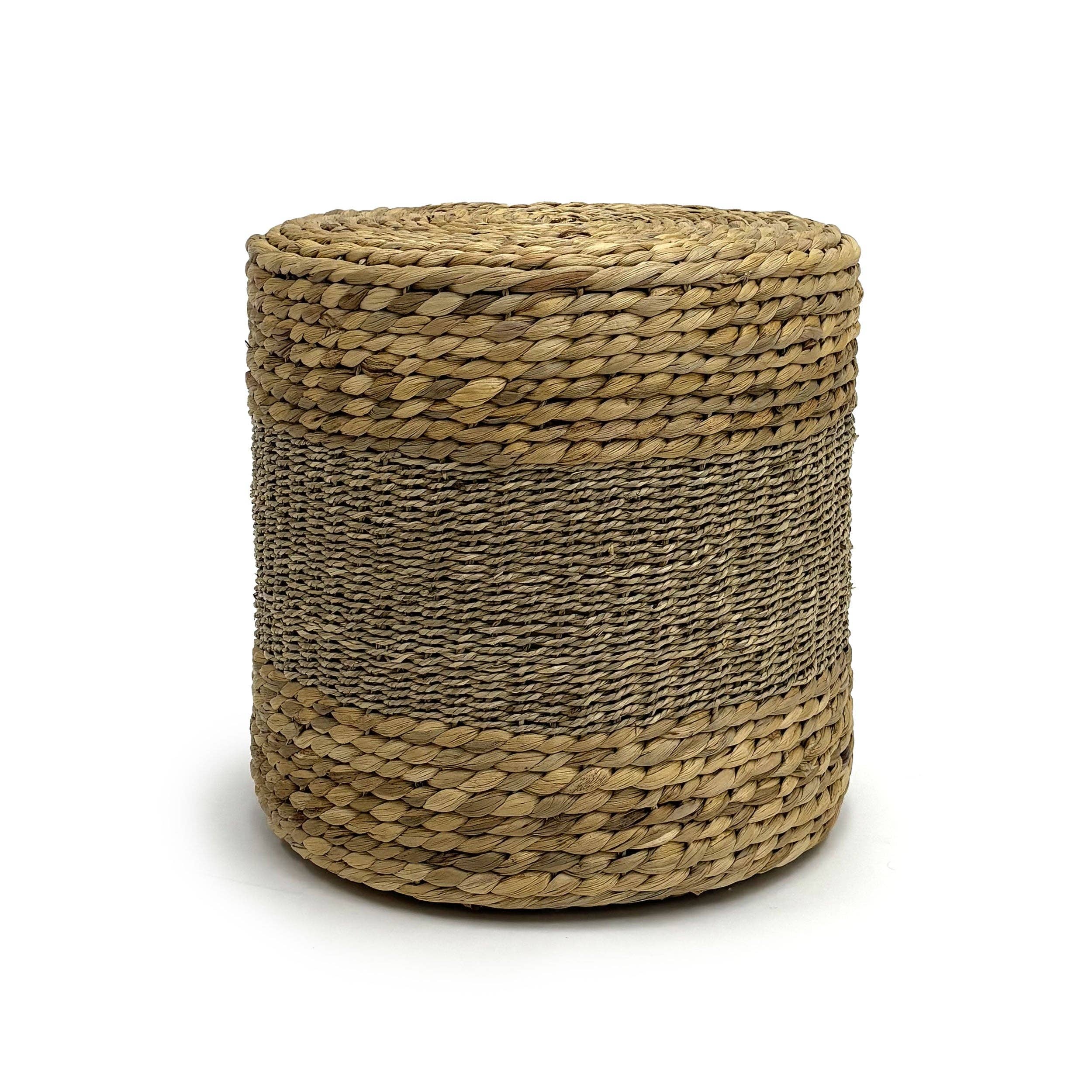 Woven Coffee Table Materials: Seagrass and Palm Leaf Product Dimensions (inch): W39.5" X D39.5" X H10" Design Features: Handwoven Craftsmanship: Each stool pouf is meticulously handwoven by skilled artisans, ensuring a unique and high-quality piece. Natural Materials: Made from sustainable water hyacinth and palm leaf, offering an eco-friendly and organic aesthetic. Versatile Design: Can be used as a stool, pouf, footrest, or decorative accent, perfect for adding a touch of nature to any room.