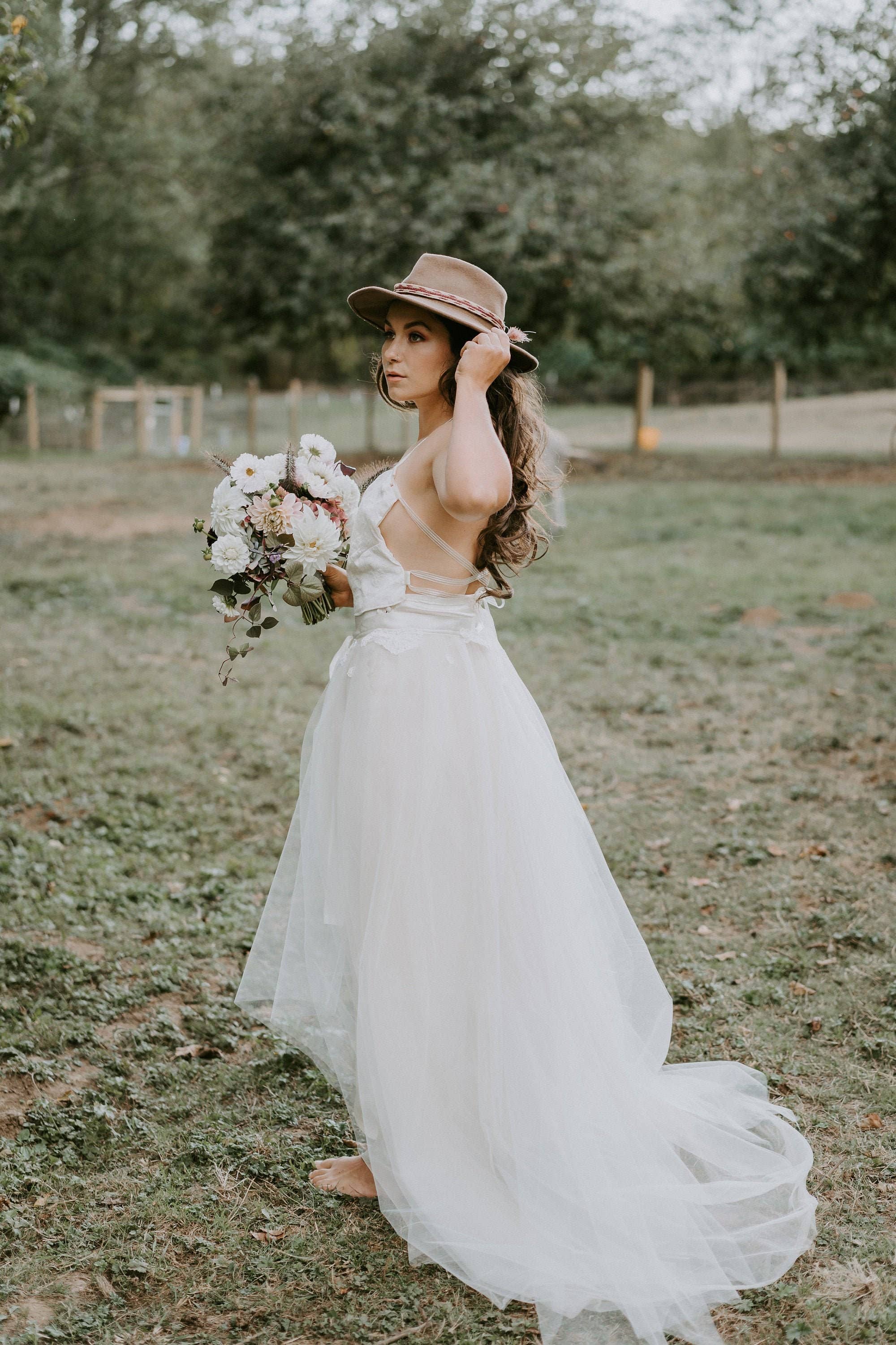 Olivia Tulle Over Skirt // For Wedding Dress / Tulle Bridal Skirt // Detachable Train/ Chapel Train.Our "Olivia" tulle overskirt is made of premium bridal illusion, matte and shimmer tulle and the perfect topper to fill out princess skirts or make a short skirt more formal. The layers of tulle billow wonderfully for a princess feel and modern look. All our tulle skirts have shimmering tulle at the top for added sparkle that looks amazing in photos. The longest length leaves a wispy layer of tulle at the bottom to let your shoes peek through and a chapel-length train that trails behind you. Available in: White Ivory Ivory and Champagne (shown) Champagne Gold Blush Cinderella Blue Silver Black The standard tulle colors are to match our silk and lace separates (sample colors shown in last picture).