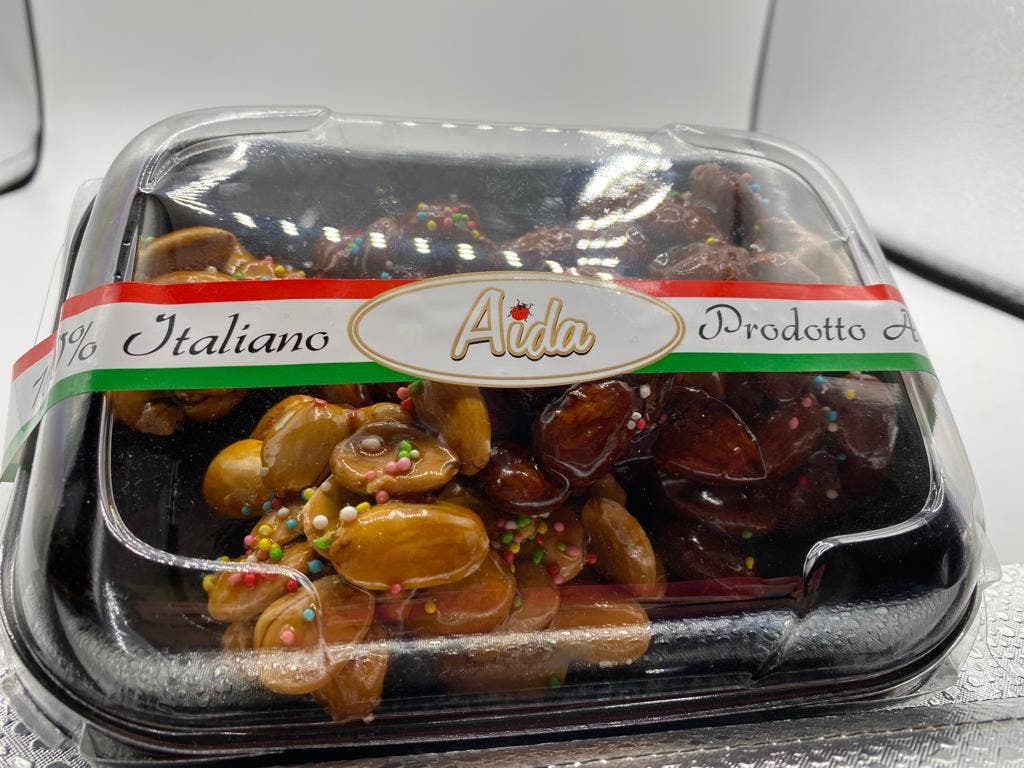 The nougat is a typical dessert of the Sicilian tradition. The simple recipe and craftsmanship create a crunchy white dough of almonds, pistachios and honey which is then wrapped in dark chocolate. The flavored variants of dark and white chocolate are: orange, pistachio and lemon Strengths: craftsmanship of the product that is made only with non-industrialized manufacturing steps, there are dyes and preservatives but in percentage below 1% Directions for use - Tasty at all times, rich in vitamins from dried fruit, an energetic and tasty snack Nutritional table - Nutritional values per 100g: Energy 1840kJ / 439kcal, Fats 21g, Carbohydrates 54g, of which Sugars 27g, Proteins 8.1g, Salt 0.3g Allergens- May contain: Peanuts, Cereals containing gluten, Sesame Storage method - Keep in a cool, dry place away from heat sources Weight with packaging - 2100 g