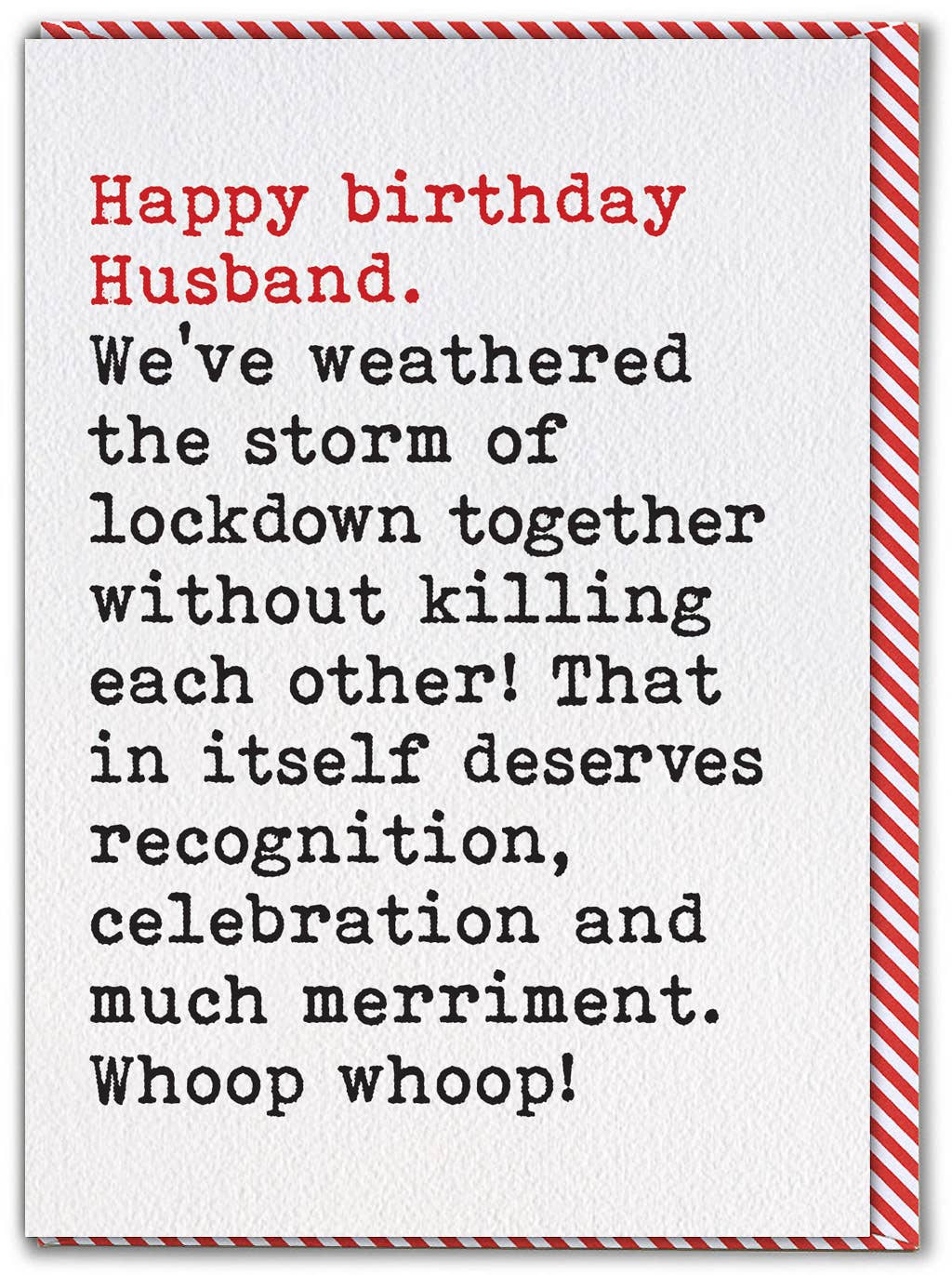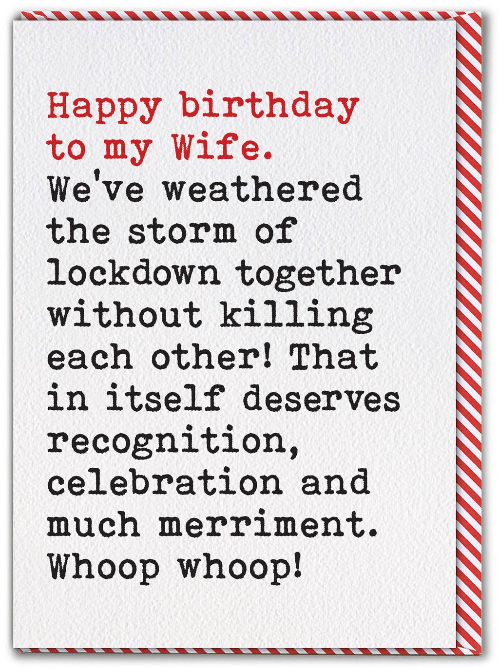 Prepare to spread some humour into your customers' lives with our range of funny wedding day cards. Designed by Brainbox Candy, these humor cards are printed in the UK on high-quality, sustainable FSC Accredited card stock. The cards are blank inside and come with a recyclable lovely colourful envelope. Supplied in: Packs of 6 Dimensions: 120mm x 270mm Weight: 18g
