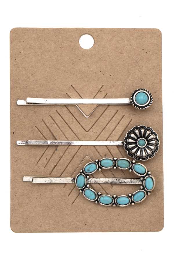 WESTERN CACTUS FEATHER TURQUOISE BEAD ASSORTED PIN SET