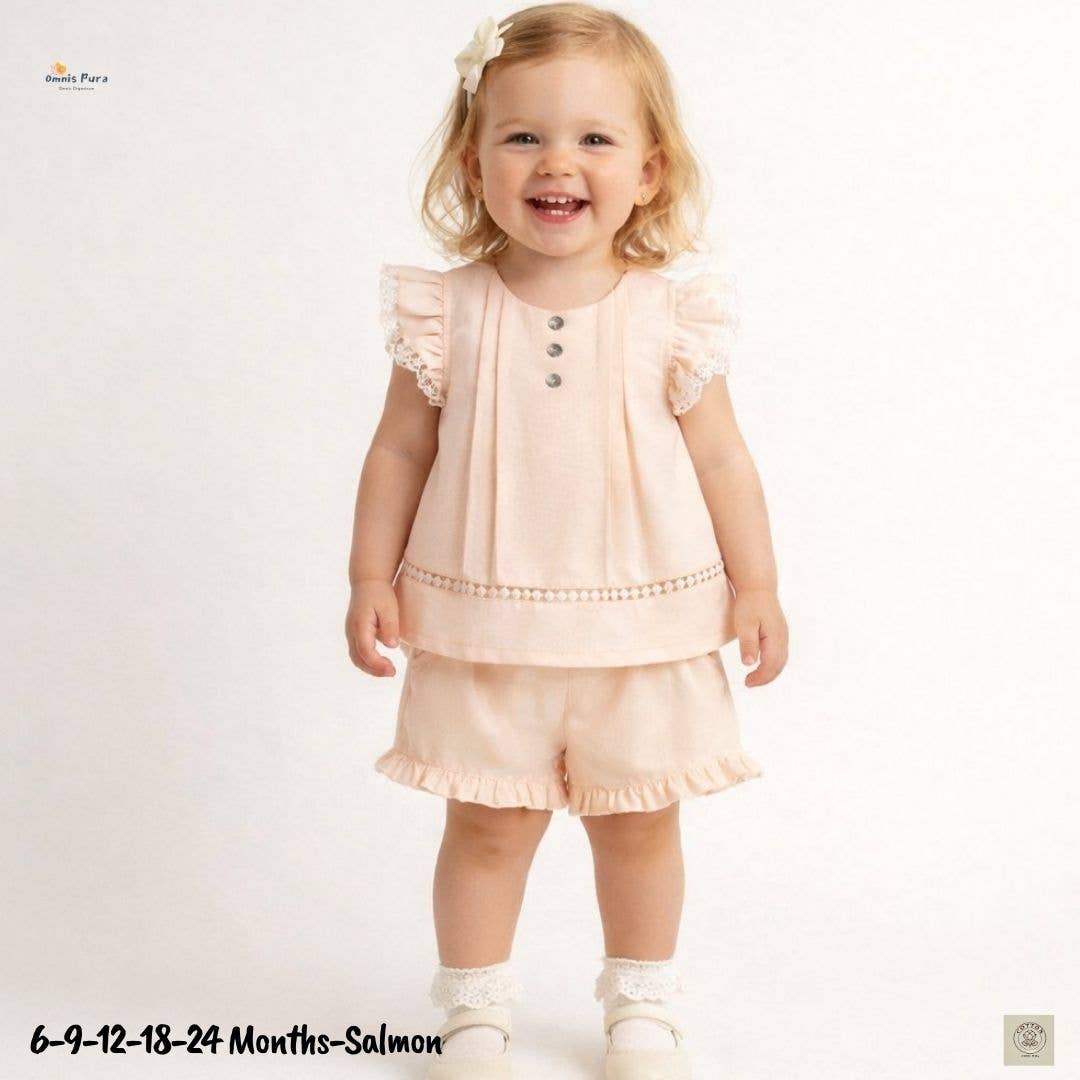 A modern classic for your little minimalist. The Ribbed Button-Front Play Set in Salt is a bright white essential inspired by the purity of sun-dried sea salt. Designed for play, lounging, and everything in between, this two-piece set is crafted from a soft ribbed cotton blend that’s breathable, lightweight, and perfect for warm days. The short-sleeve top features a functional button front for easy on-and-off, while the matching ruffle-trim shorts offer a gentle, flexible fit. The color Salt brings a crisp, coastal brightness that feels fresh and timeless — just like summer by the sea. Features: * Soft ribbed cotton blend for everyday comfort * Functional wood-look buttons * Ruffle-trimmed shorts with soft stretch waistband * Neutral style with a modern coastal vibe Fabric: 95% Cotton, 5% Spandex Fit: True to size Care: Machine wash cold, tumble dry low Whether it’s beachside mornings or backyard adventures, this play set is your go-to for easy, elevated summer dressing.