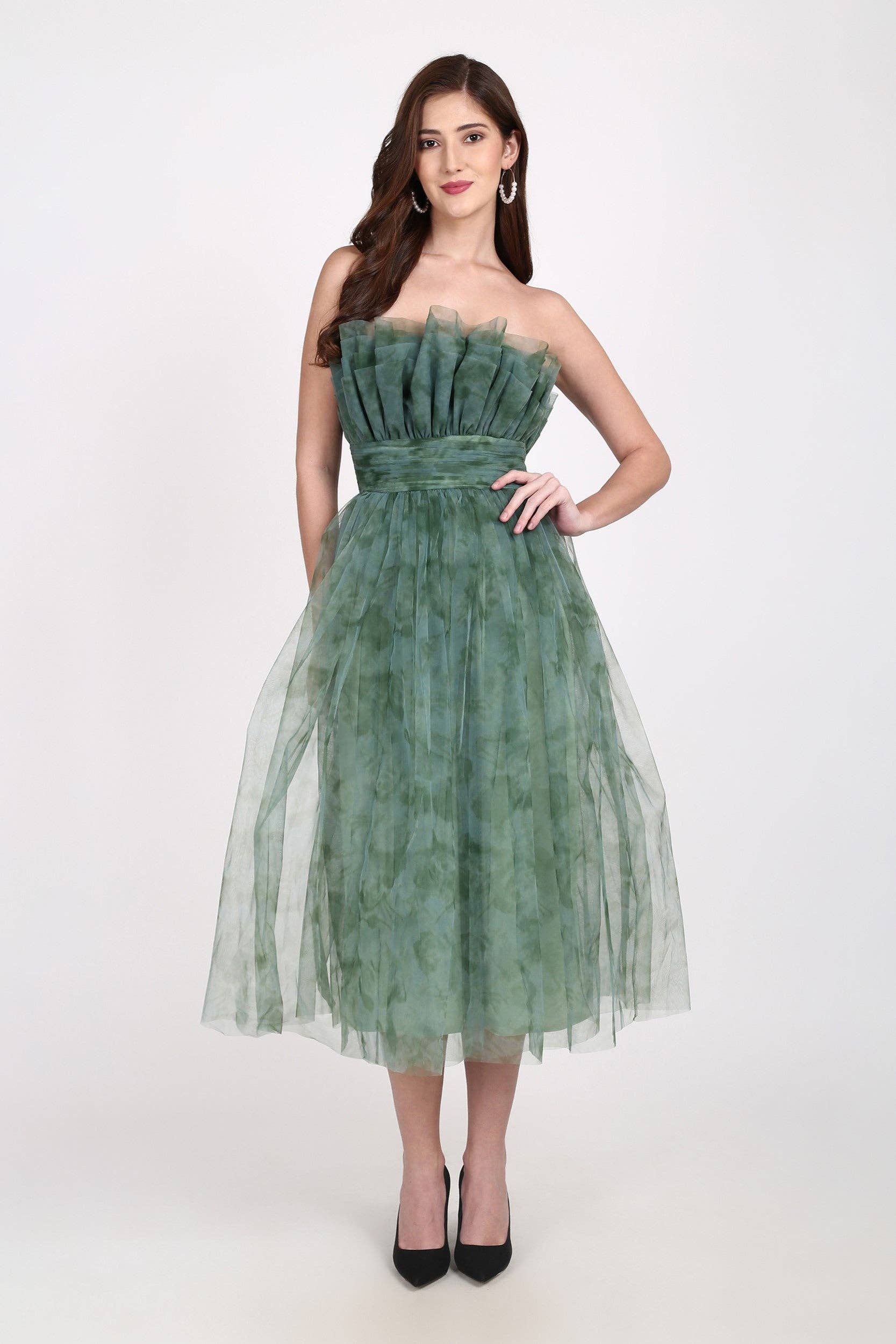 Ollie Tulle Midi Dress in Emerald Green