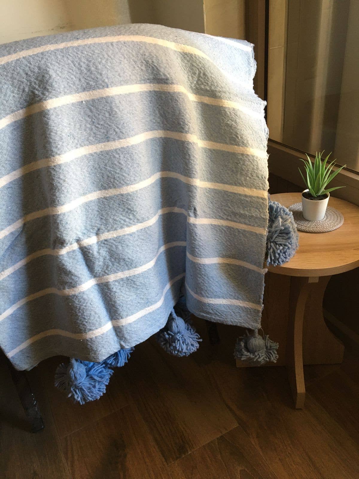 Gorgeous Moroccan Pom Pom Pillow Cover handwoven with love from Marrakech, Morocco. This piece can be used in your home draped over your lounge, as a bed covering or decorated at the end of your bed. Super soft and warm. * Made : Handmade in Morocco * Material(s) : 100% Cotton * Approximate Measures : Approx. 19 in x19 in || 48 cm x 48 cm * Handmade Cover Only * Care Instructions: Dry Clean Only or Hand wash and hang to dry with a mild detergent All of our Moroccan Pom Pom Pillows Covers are carefully selected, only using the finest cotton by skilled local weavers.