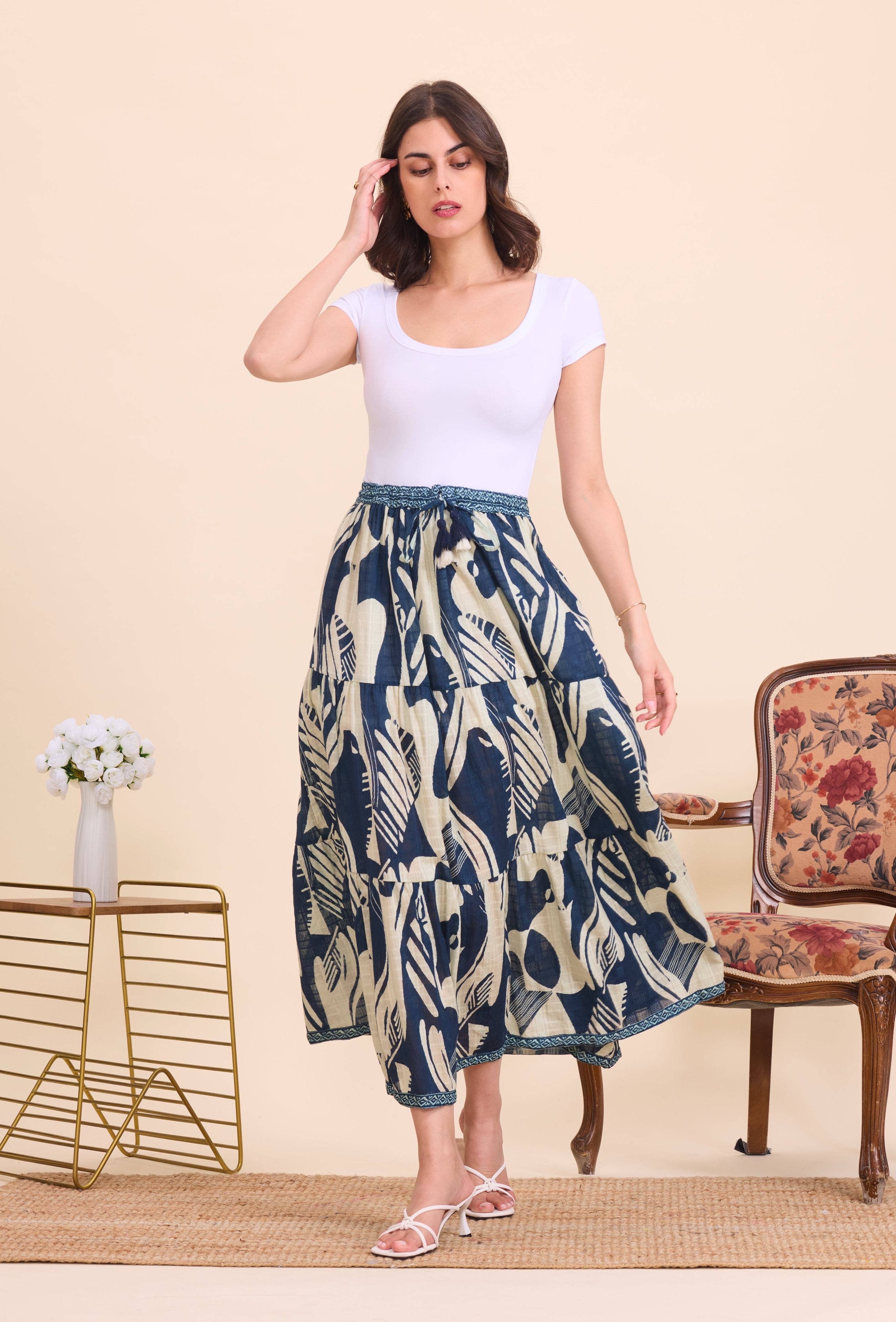 Bohemian cotton mid-length skirt - Orice