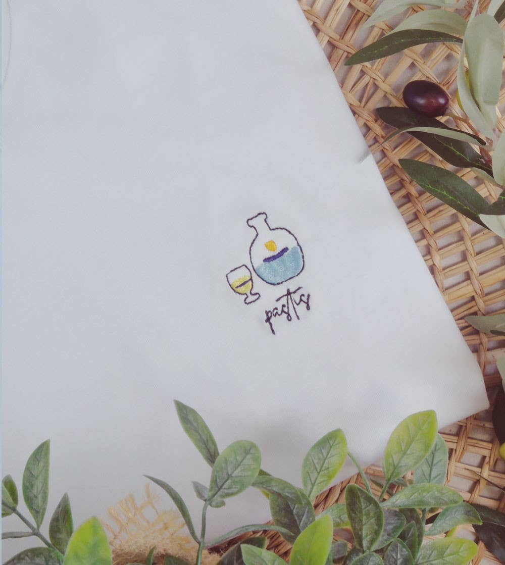 Embroidered T-shirt in 100% organic cotton certified GOTS. Basic fitted t-shirt with a unisex round neck that fits both men and women. Ideal T-shirt in any season, because the aperitif does not wait and speaks to everyone! T-shirt embroidered in our workshop in the Paris region.