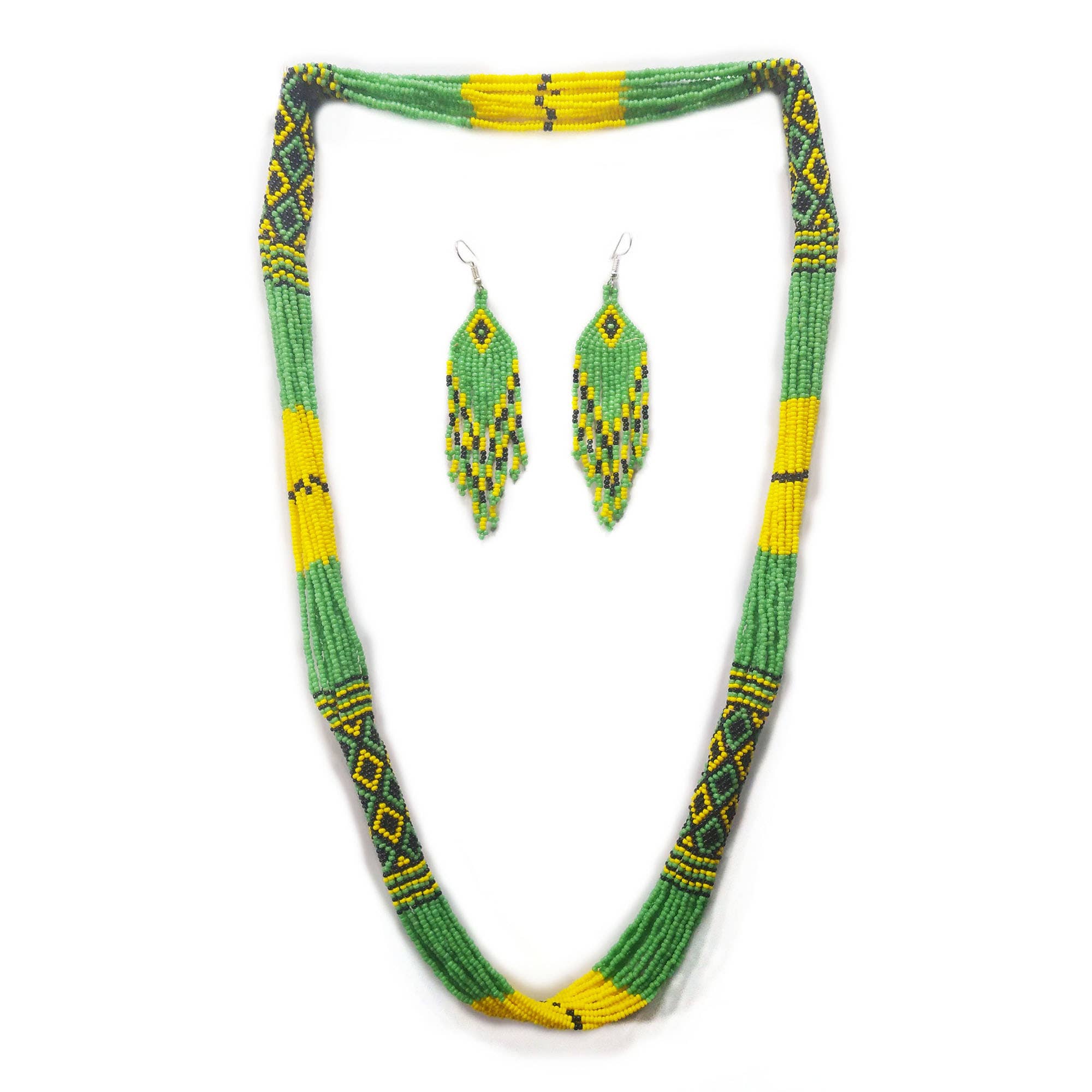 Red Native American Style Beaded Necklace Earring Set