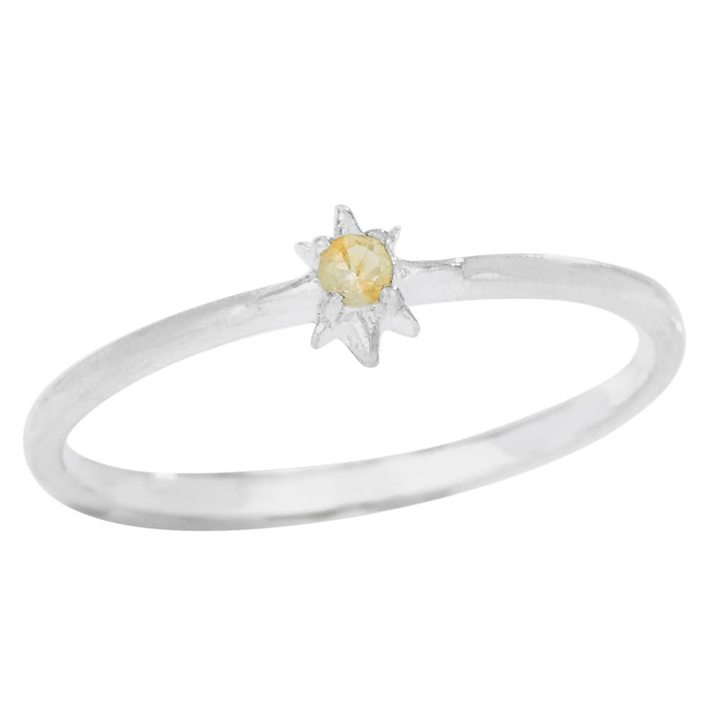 Tiny sterling silver star ring with chalcedony center. Approximately 1/8"
