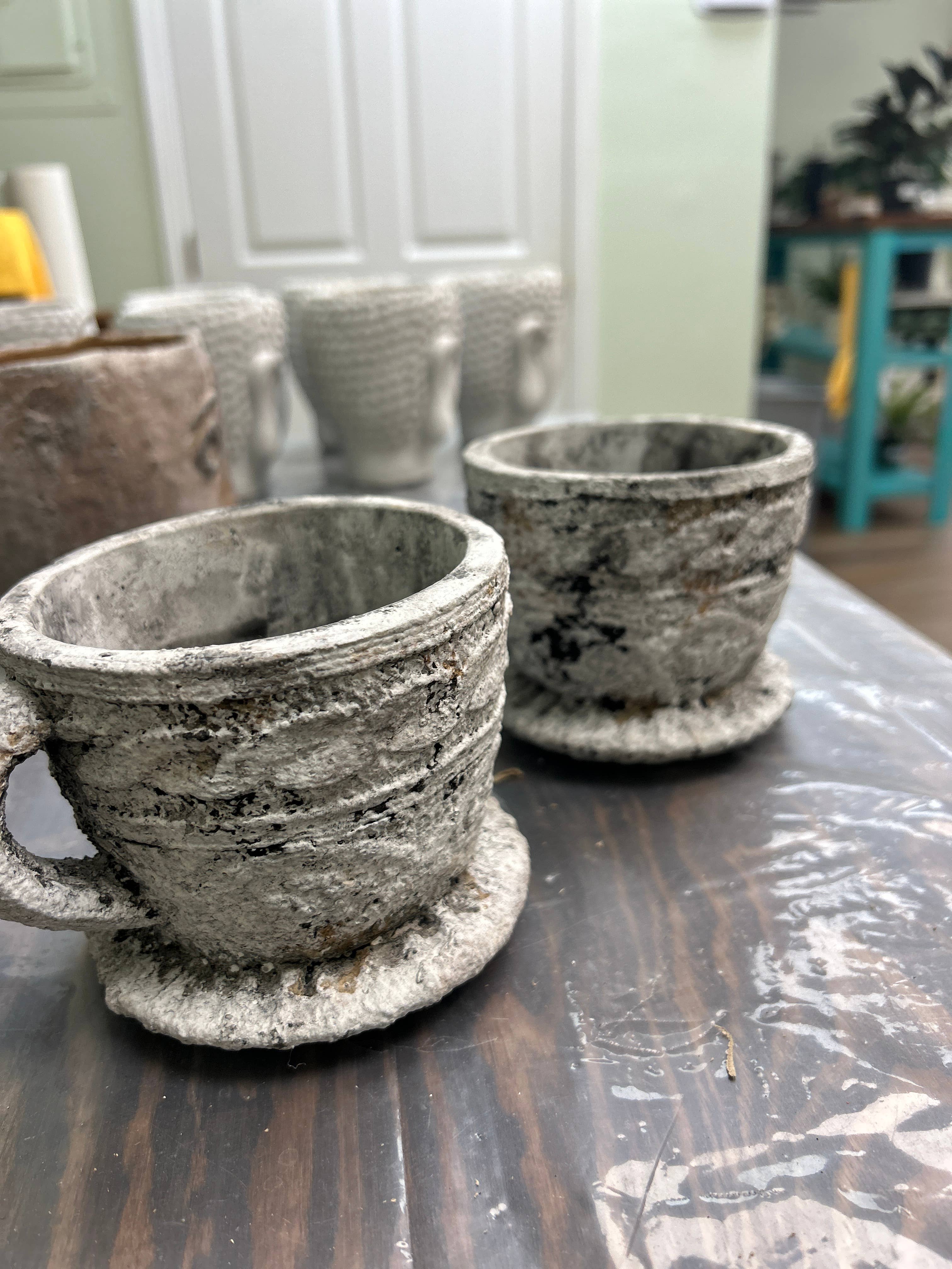 Cement Rustic Tea Cup Planter