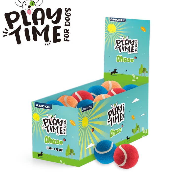 12 in a box The playtime range is a colourful and fun range to keep your pet entertained for hours, it features a wide variety of toys to suit your pets' character whether they love gentle play and cuddling with cute soft plush or energetic dog that love to run, swim and retrieve. Mega Tennis Ball from the Playtime range is perfect for interacting with your pet. All dogs love a tennis ball, the mega tennis ball is perfectly sized for big dogs who love to run and retrieve. Toy measures 10cm. This toy is not indestructible. Please supervise your dog when they play with this toy." There is also a regular sized Tennis Ball toy see code 991079 which is sold in display boxes of 20.