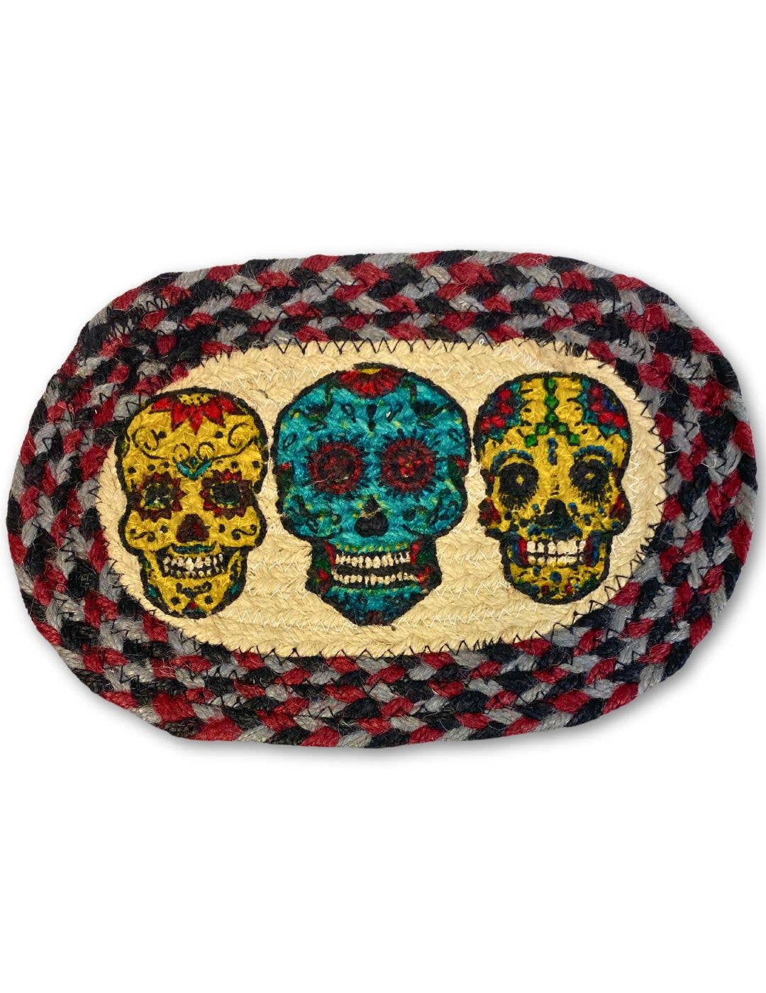 10" round Trivet stenciled in design #18. Made from a durable and long-lasting natural Jute material.