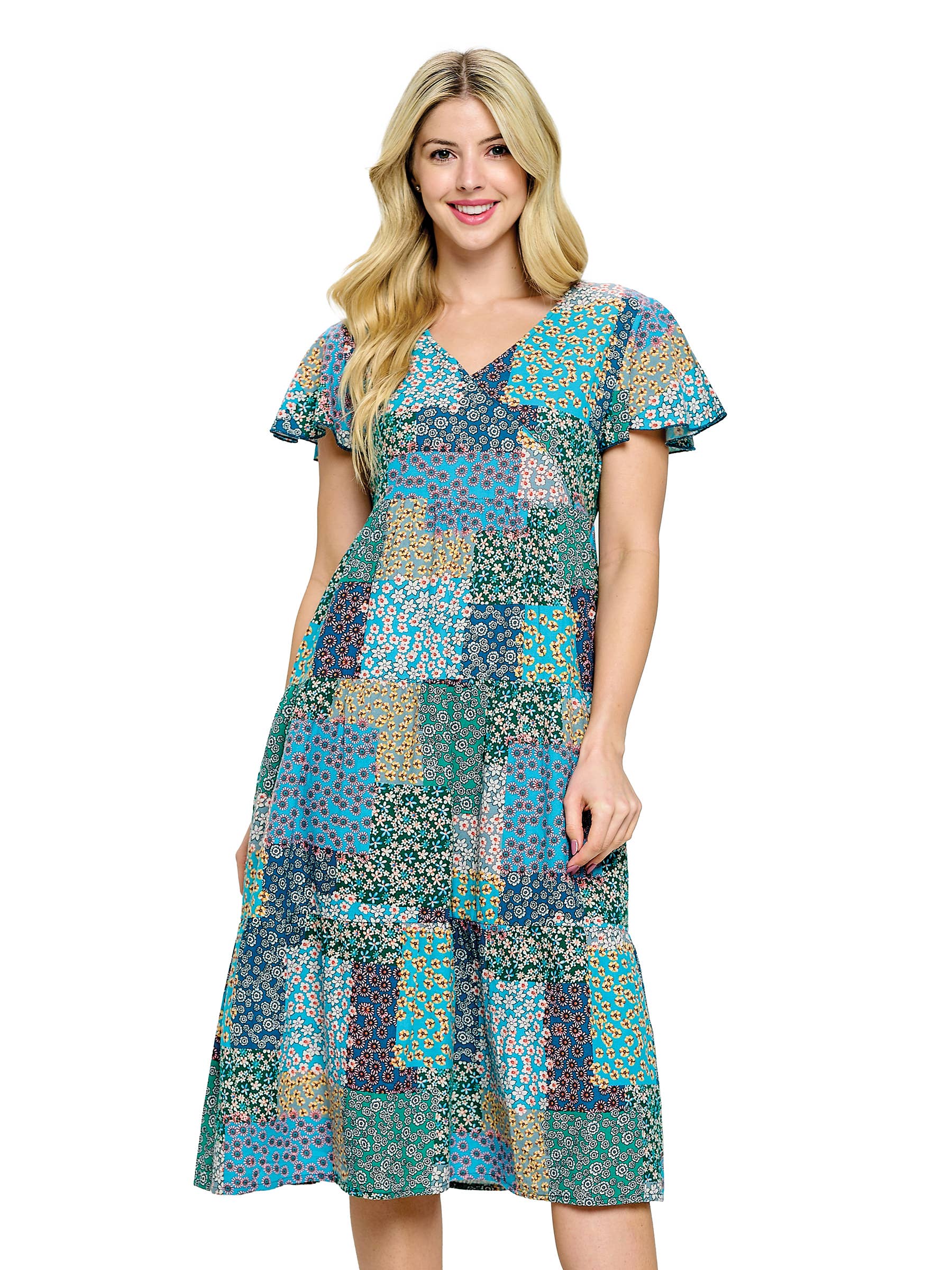 – Spring Summer Patchwork Dress – Boho Floral Dress – Gypsy Groovy Boho Look – Casual Style – Loose Fit A-Line – Flowy Easy Fit – Relaxed Silhouette – Color Contrast – Inseam Pockets – Round-Neck – Sleeveless – Knee Length – 65% Cotton 35% Polyester – Made in Nepal Measurements : Length- S 36”, M 37”, L 37.5”, XL 38” Chest- S 36”, M 38”, L 41”, XL 43” Hem - S 60”, M 62”, L 65”, XL 68”