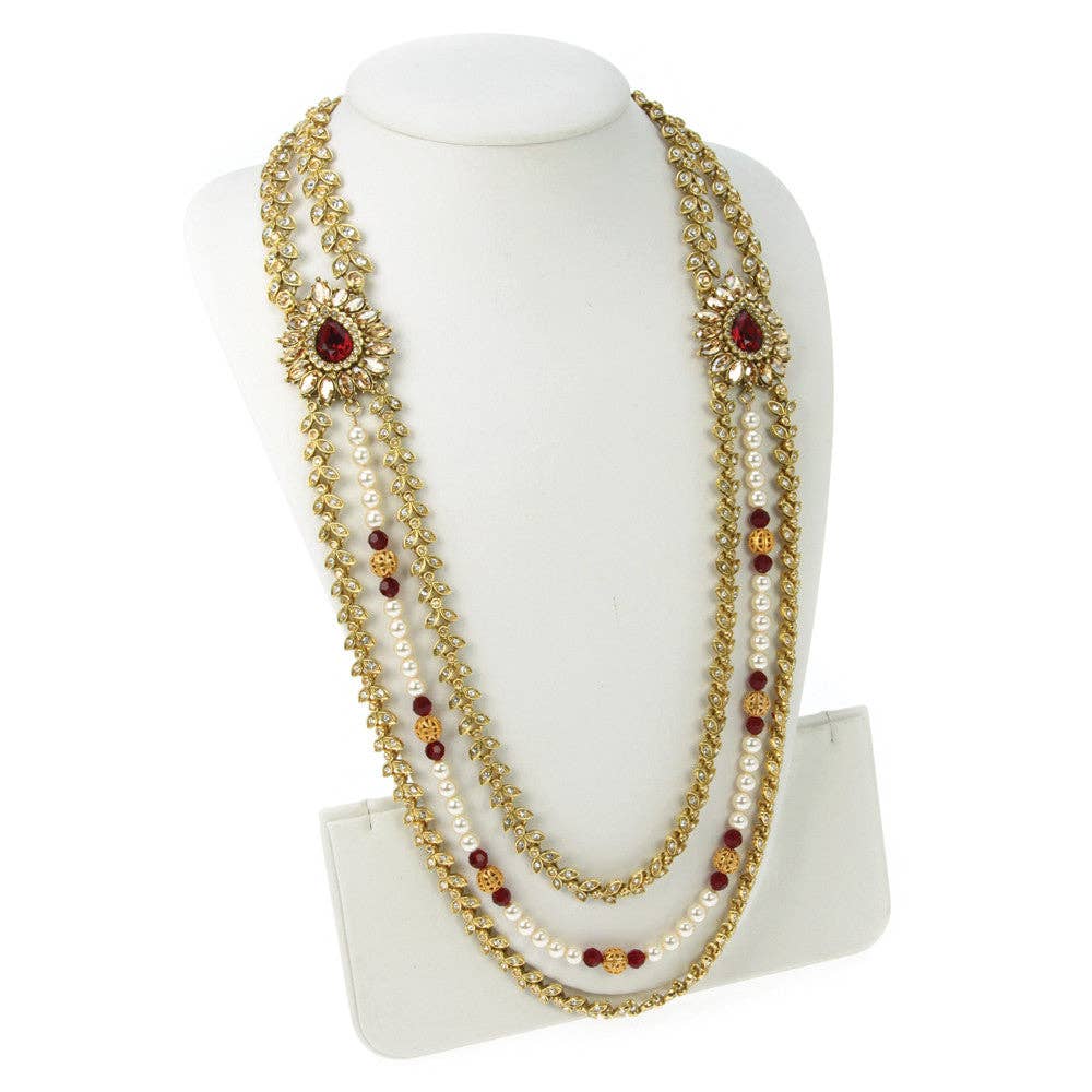 * This antique necklace is inspired from the tribal Turkmen style, carved, simple, yet astonishing is how we define it. Its multilayers and long mala style with silver rustic hues have turned it into a masterpiece. The vintage necklace has a unique touch of antiquity. * The star-shaped, floral motifs are attached together, making layers over one another while attached with pyramid shape brooches at each side. The center has a pendant ornated with archaic motifs, carved all over, and multicolor glass stone inlays in the red and green shade. This handmade necklace is crafted by the local Central Asian artisans carrying fine details, making it a truly phenomenal craft. * The classic necklace would stun any style while getting along your attire, traditional or modish, seamlessly. It will surely complement your fashion statement in a remarkable way.