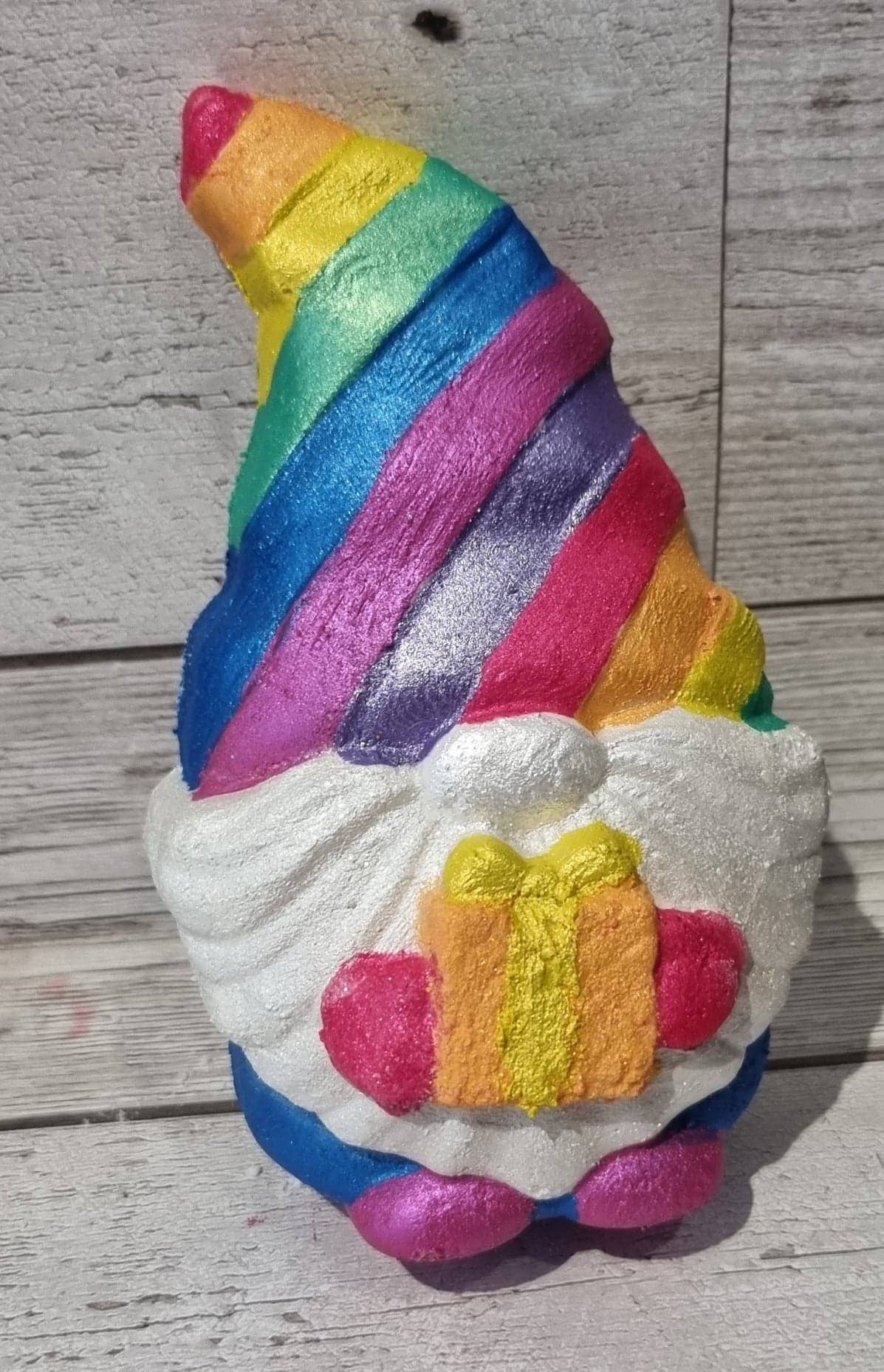 Now with a hidden rainbow inside! Fragrance- {Watermelon}- A refreshing fragrance with top notes of juicy watermelon and lime. Getting the most out of your bath bomb Store your bath bomb in a cool, dry place away from direct sunlight. To use-Place your bath bomb into warm water and watch it bubble away, release it's scent and then dissolve. Please note that handling when wet may cause temporary staining. Ingredients Sodium bicarbonate, citric acid, parfum, sodium lauryl sulfosuccinate, prunus armenacia kernel oil, polysorbate 80, kaolin, CL10020, CL45100, CL42090, Alpha iso methyl ionone, benzyl alcohol, benzyl salicylate, coumarin, hexyl cinnamic aldehyde, limonene. Average weight: 180g The product Every handcrafted bath bomb is made by us and then pressed into the mould by hand. Every bath bomb is made in our family home in Birmingham, UK