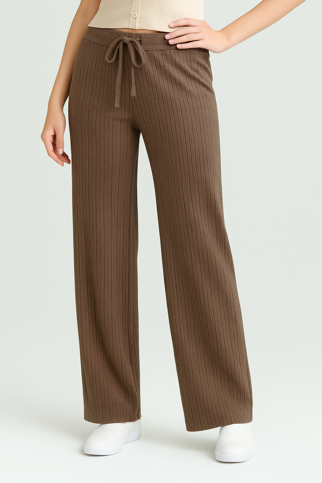 Striped Knit Wide Leg Trousers With DrawstringÂ