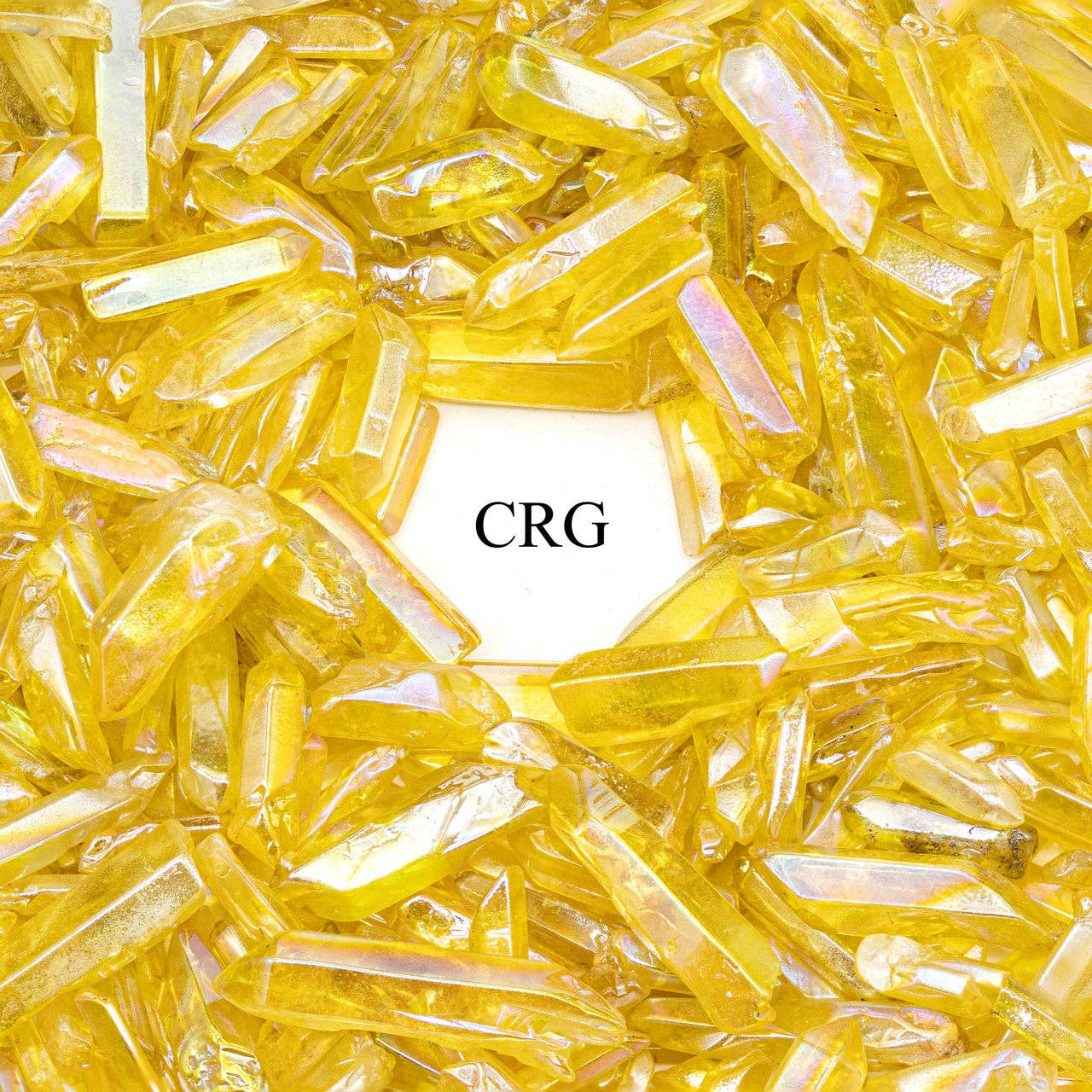 1 LB. LOT - Yellow Aura Quartz Points / 1"-2" avg. Origin: China Pieces measure approximately 1"-2" (AVERAGE SIZE) PLEASE BE AWARE | Picture is example ONLY | This is a natural product that has been treated with a titanium coating. Please allow for variation of size, shape, color, and formation | This listing is for 1 LB. No cherry-picking. Randomly selected gemstones. Requests cannot be fulfilled. CRYSTAL RIVER GEMS WHOLESALE BULK **Fast domestic and international shipping**