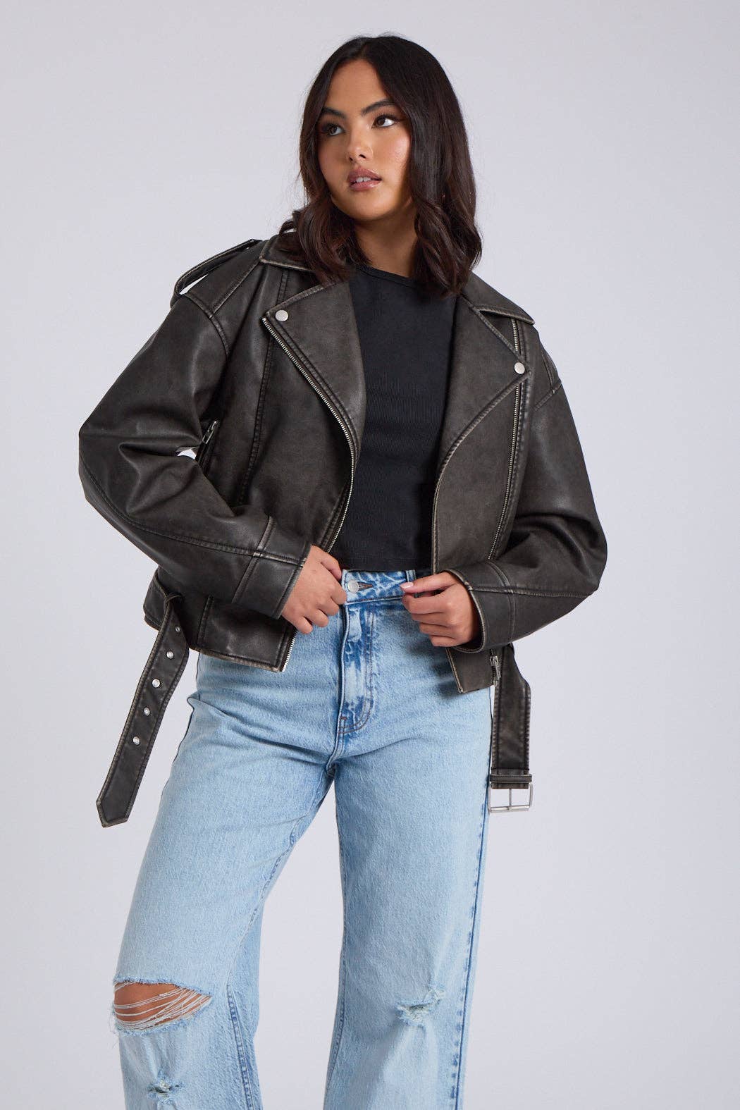 GOLD STAR MOTO JACKET FUNCTIONAL ZIPPER SIDE SLEEVE ZIPPER WESTERN STYLE WESTERN FASHION / FAUX LEATHER / FALL / WINTER / WESTERN JACKET / BOHO / BOHEMIAN / BEST SELLER / BUTTON DOWN / RODEO / WESTERN EVENT / PERFECT FOR COLD WEATHER / LAYERED PIECE / LONG SLEEVE / FRINGE / PU BLACK / NIGHT OUT / STATEMENT PIECE / TRENDY /