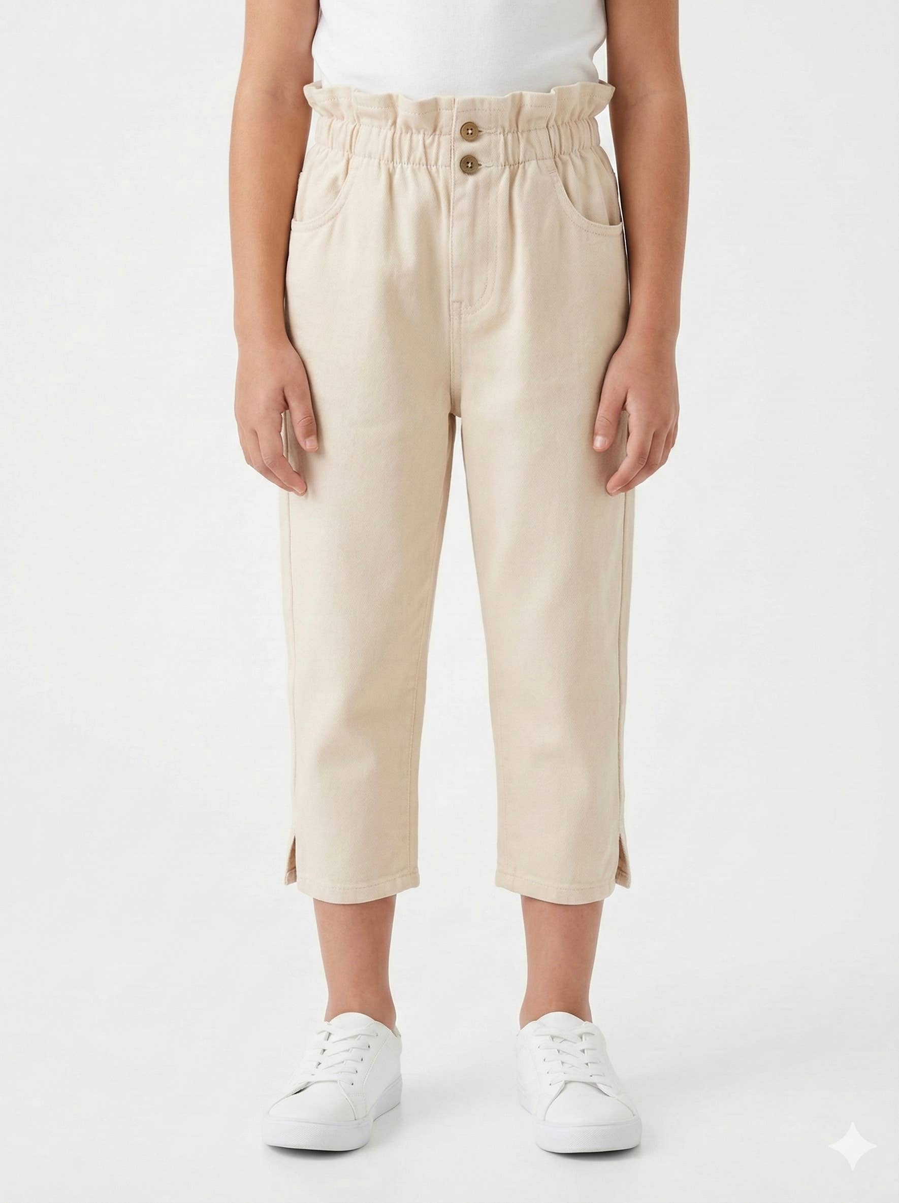 Two side pockets and faux buttons. Sold in a set of 8 pieces from 4 years to 14 years, in the color = 1/4 years, 1/6 years, 2/8 years, 2/10 years, 1/12 years, 1/14 years. AI-generated mannequin image for illustrative purposes. The actual product may vary.