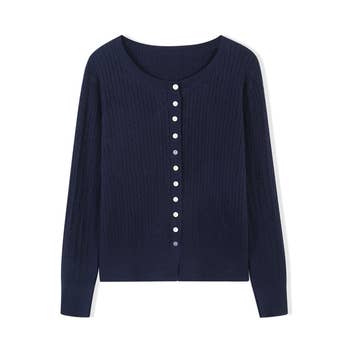 FT7477 Pointelle Scoop Cardigan Top