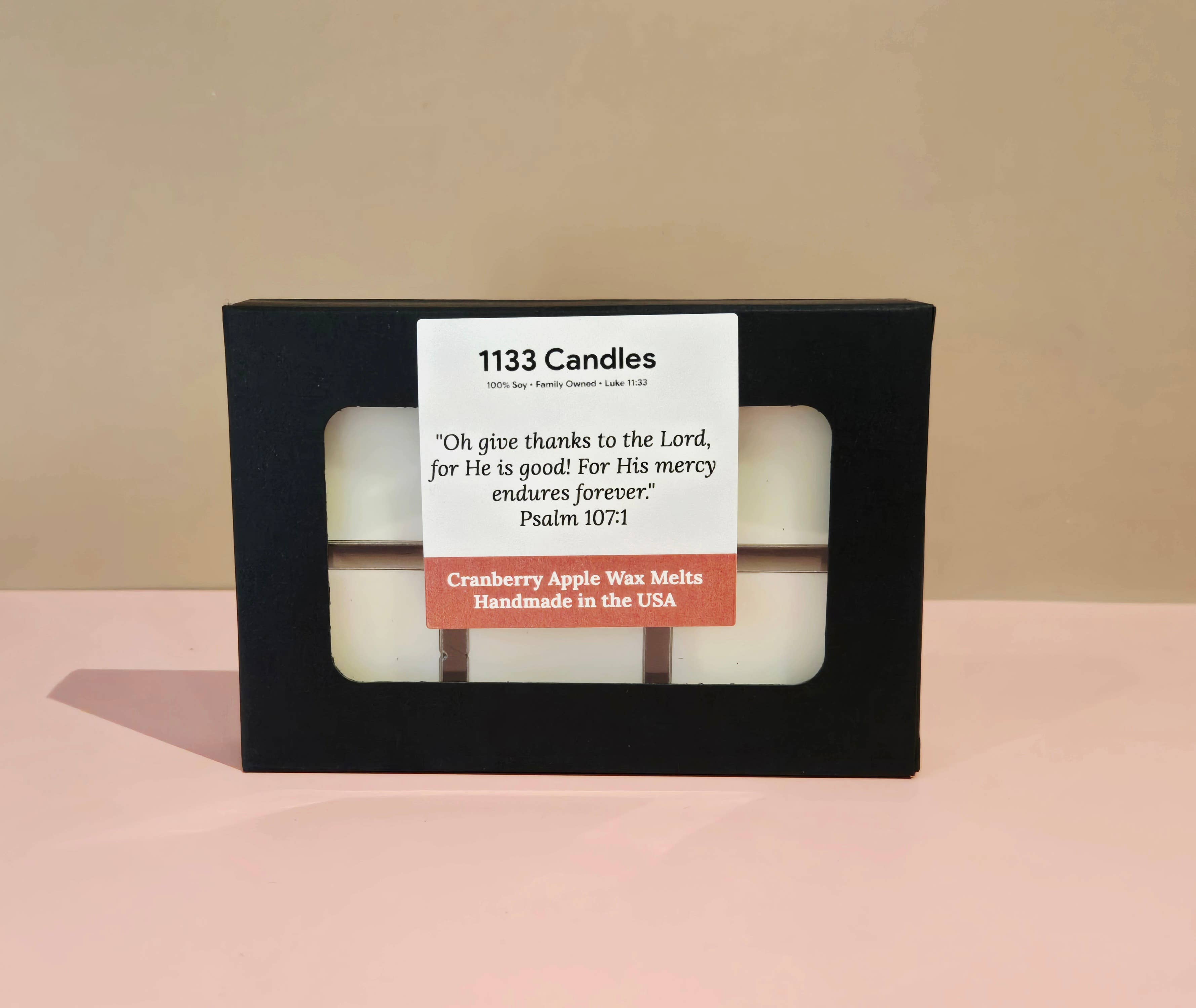 First off, I want to thank you for offering no minimum order requirements and not making me buy something in bulk! I have a small storefront in the front of a salon so I don’t have room to display or store an extreme amount of anything. I do custom embroidery and I just need enough items to fill in the gaps. These wax melts were amazing quality! I smelled them as soon as I opened my mailbox. Being Christian based is a huge plus! Highly recommend!!
