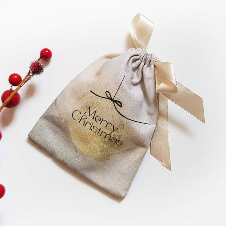 A sustainable and whimsical alternative to wrapping paper. Reusable over and over again, and a gift in itself! Great to hold lots of small gifts, beauty products, stationery, sweets and chocolates and so much more! ♦ FEATURES - Handmade with 100% cotton OEKO-TEX 100 certified fabric. - Digitally printed design consisting of a green background with stars and 'Merry Christmas' in pink. - Tied with eco-satin ribbon. The ribbon has been manufactured from recycled plastic bottles. ♦ FAQs: HOW ARE THE POUCHES SUSTAINABLE AND ECO-FRIENDLY? - The fabric used is OEKO-TEX 100 certified which means it has been independently tested to ensure they do not contain over 300 harmful substances. - The fabric has been printed using ECOCERT GOTS certified inks. This means they have been independently checked to ensure they have been made in an environmentally and socially responsible way. - Printed using ECOCERT GOTS certified ink.