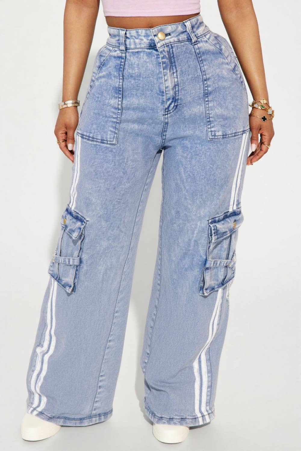 FOIL CARGO WIDE LEG JEANS