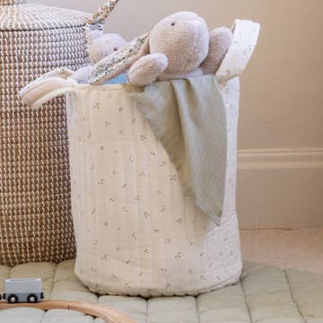 This large cotton toy storage bag is perfect for keeping toys tidy and organised in a child's nursery, bedroom or playroom. It can be used for toys, clothes, storage, teddies or for any other storage purpose. This eco friendly toy storage bag is the perfect way to reduce your use of plastic. The bag has double drawcords. Size: 49 x 75cm
