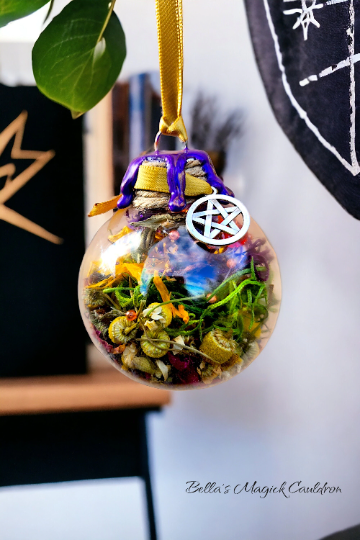 Witch Balls were very popular in 18th century England, but their actual origin is thought to be much older. >2 inch acrylic plastic ball >Handmade to order items (fast turnaround rate) >Unbranded-only the ball will be received with info scroll. >Filled with beautiful, preserved flowers/mosses/herbs/seashells and waxed sealed with Amethyst on top. For well over 300 years hollow glass spheres (I use plastic balls for durability as glass easily breaks if bumped against a window pane or dropped) have been hung in windows to ward off witch spells, evil spirits and ill fortune. Hanging these decorative balls in the window is thought to tantalize evil spirits which may be threatening a home's tranquility. The evil spirit is mesmerized by the ball's reflective beauty. When the spirit touches the sphere it is absorbed and trapped inside the ball. The Witch Ball may be hung in an eastern window, placed on top of a vase or suspended by a cord (as from the mantelpiece or rafters).