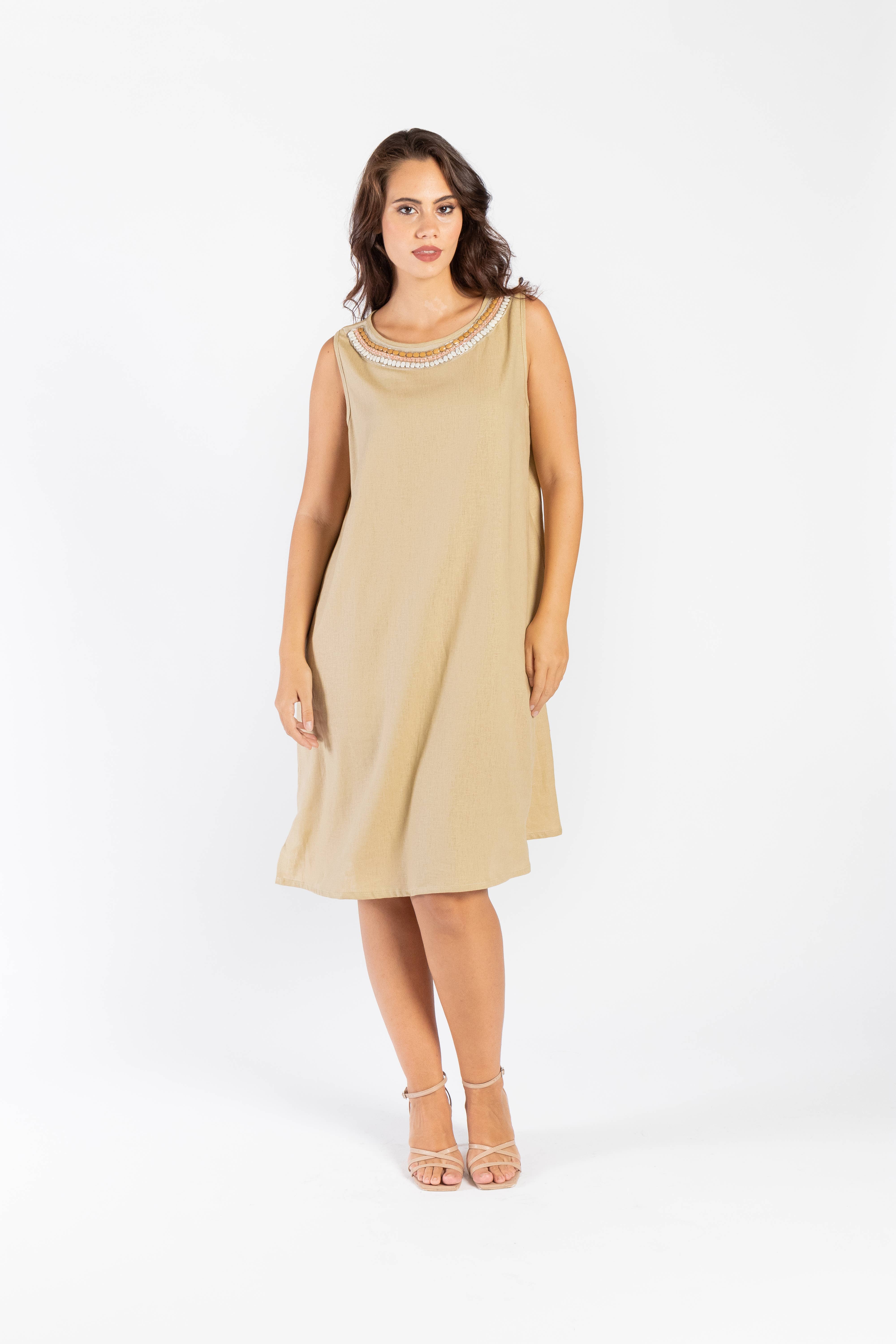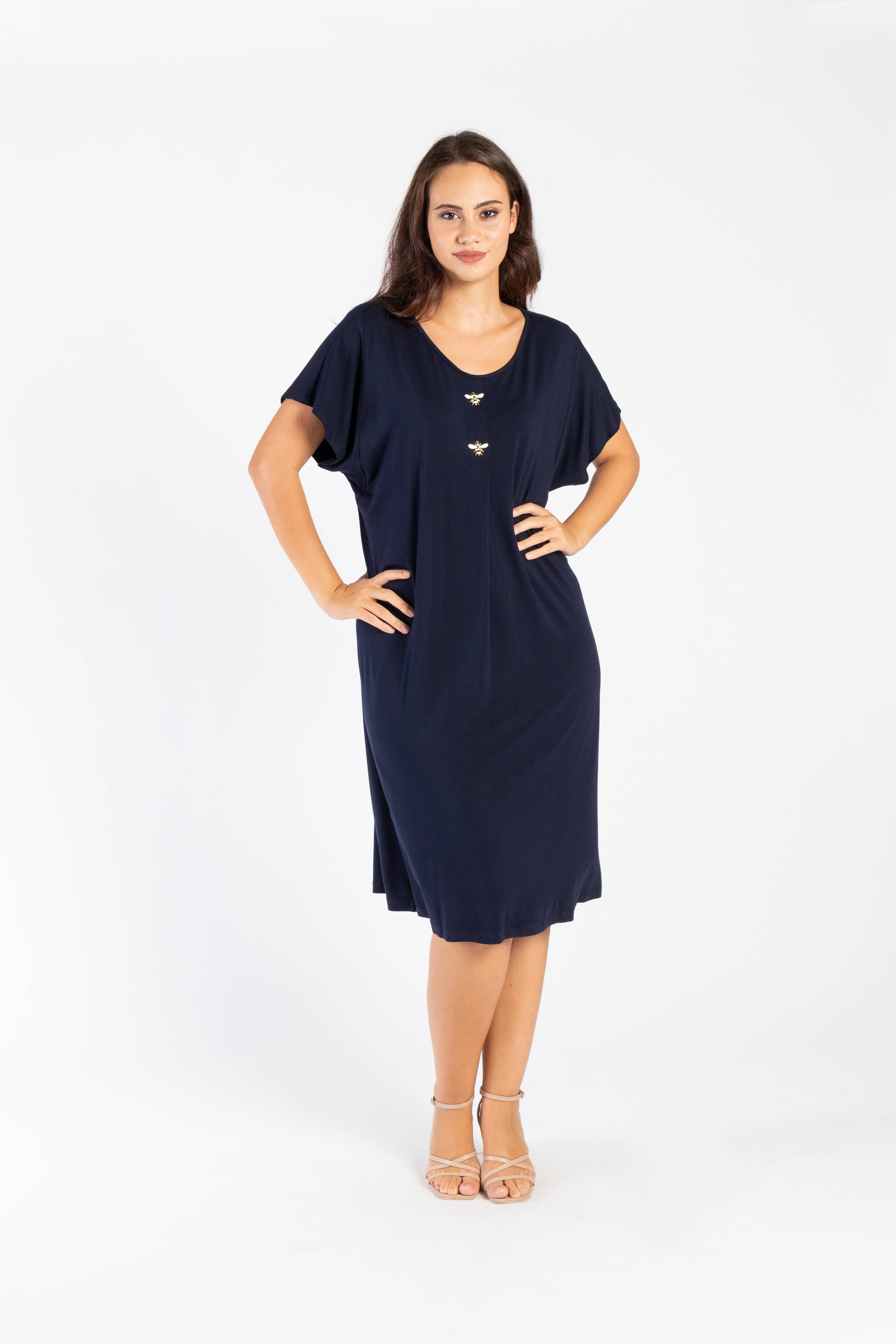 CG91947/01 Dress Viscose 100% Patterned Crew Neck With Teardrop At The Back