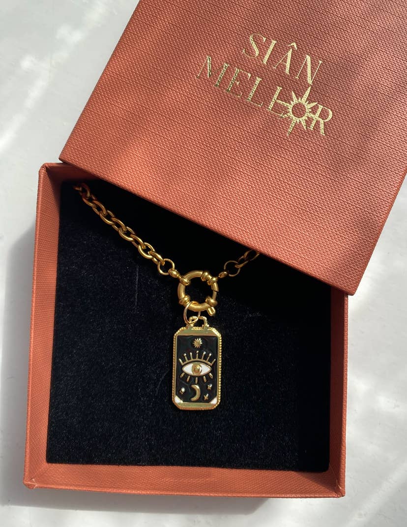 Satellite chain with large star charm made from 18k gold plated stainless steel, prettily packaged in FSC approved eco boxes. Also available as a chunky necklace and huggie hoops.